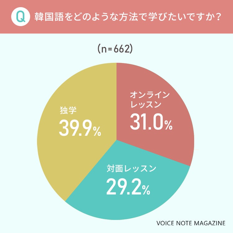 今回は事前アンケートで韓国語を「学んでみたいと思う」「以前、学んでいた」「現在、学んでいる」と回答した662名の方を対象に、韓国語のレッスンについてアンケート調査を実施しました。