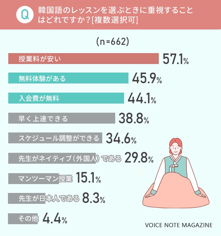 ■662人に聞いた!韓国語のレッスンを選ぶときに重視することは?