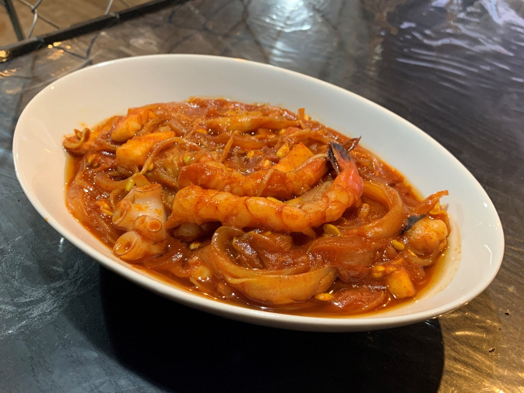 ヘムルチムは、エビやイカ、タコ等の身がプリプリとした海鮮と豆もやしをふんだんに使った煮込み料理です。韓国の海鮮専門店には必ずある定番の一品で、常連様の熱いリクエストにお応えし今回登場となりました。うま味が凝縮したコチュジャンベースのあんかけ、盛りだくさんの海鮮、シャキシャキの豆もやしのハーモニーに、ご飯もお酒も進むこと間違いなしです。