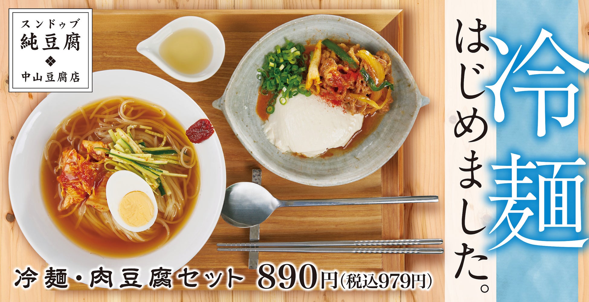 2020年5月に1号店を高田馬場、続いて秋葉原と新橋にオープンし3店舗を展開する自家製豆腐を楽しむスンドゥブ定食「中山豆腐店」では、暑い時期の風物詩となっている「冷麺」を期間限定で販売いたします。