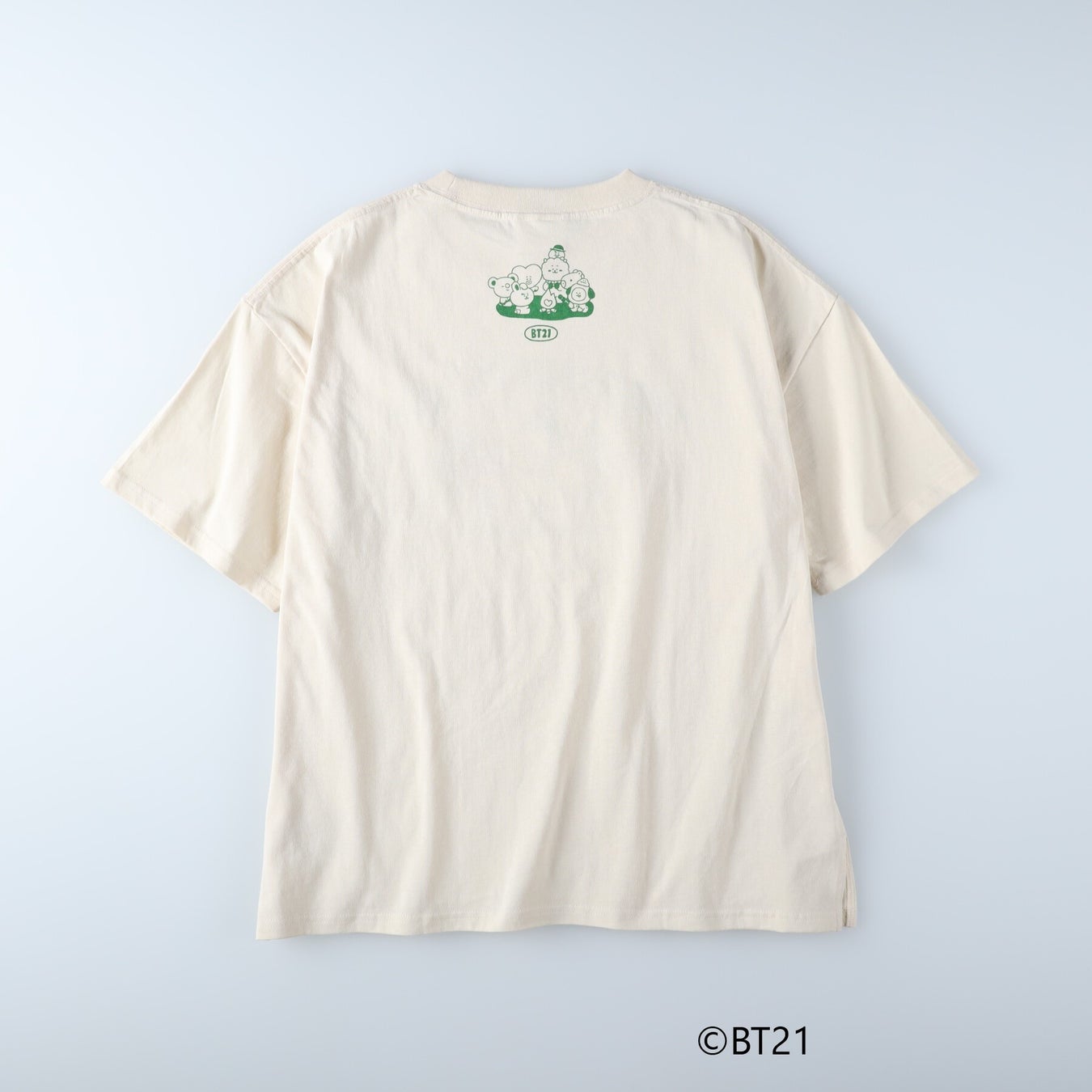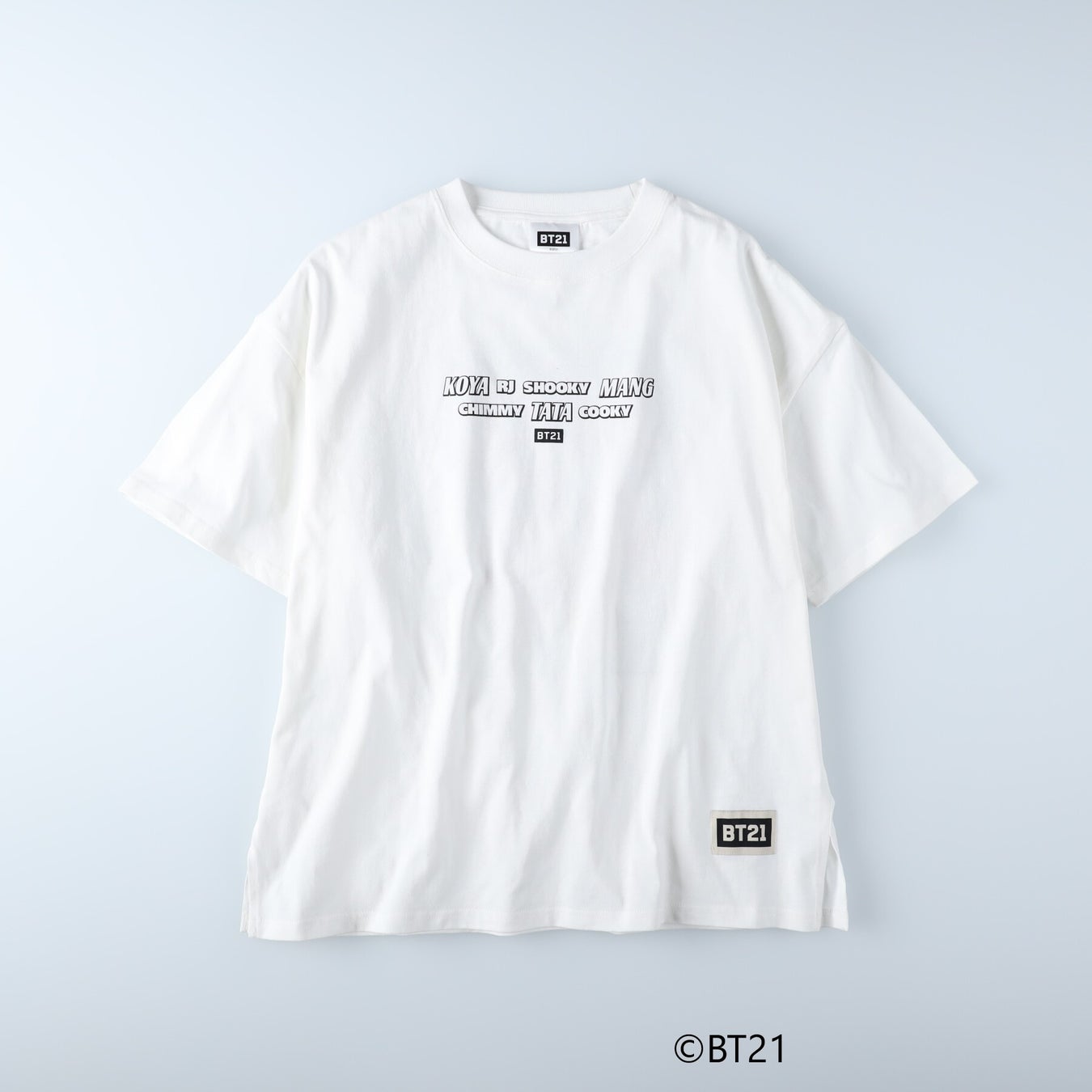 販売するTシャツは、3柄各2色の展開で、【 BT21 】のキャラクターが集合したデザインが施されています。