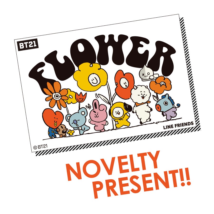BT21 FLAWER Tシャツのグラフィックがそのままプリントされたオリジナルステッカーを購入者全員にプレゼント!