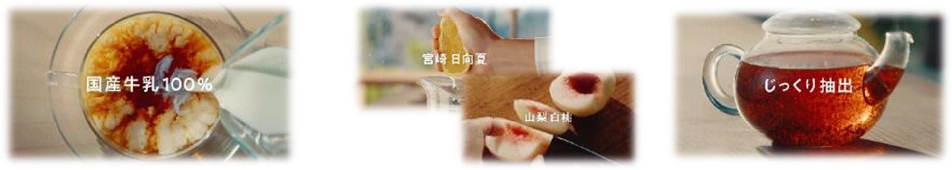 「紅茶花伝」は、茶葉、ミルク、果汁などの厳選素材とその素材の味わいを最大に引き出すために納得いくまでブレンドや淹れ方に試行錯誤を重ねた自信作です。ミルクは国産牛乳100%※1にこだわり、果汁にはおいしいところだけを搾った100%果汁をたっぷり使用※2しています。茶葉は厳しい独自規格を満たした農園の厳選手摘み茶葉のみを使用し、「紅茶花伝」こだわりのティーポットで淹れた紅茶のようにじっくり抽出し、紅茶本来の香りや味わいをお楽しみいただけます