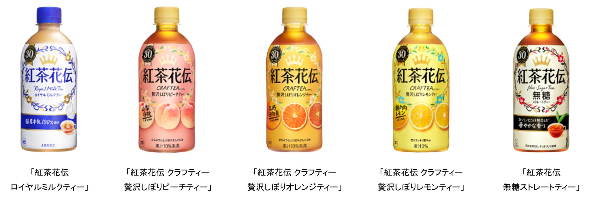 1992年に誕生した「紅茶花伝」は、「こだわりの厳選素材とおいしいひと手間」をかけ、多彩な味わいを楽しめる本格的で上質な紅茶ブランドです。「紅茶花伝 ロイヤルミルクティー」、「紅茶花伝 クラフティー」シリーズから「贅沢しぼりピーチティー」、「贅沢しぼりオレンジティー」、「贅沢しぼりレモンティー」、さらに「紅茶花伝 無糖ストレートティー」などを展開しています。