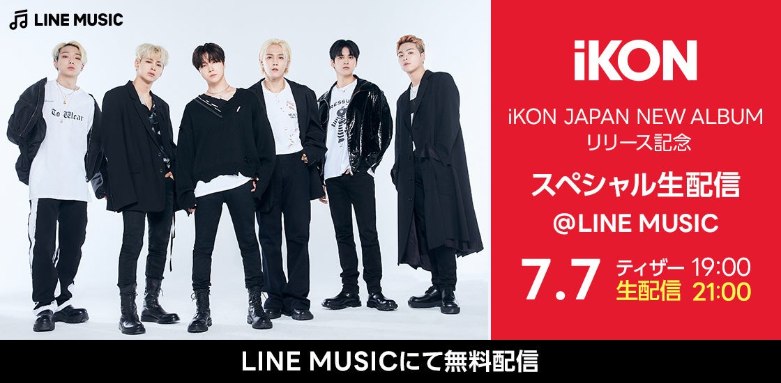 約2年半ぶりとなる待望のジャパンツアーを7月に開催し、3年4ヶ月ぶりの日本作品となるNEW ALBUM『FLASHBACK [+ i DECIDE]』を7月13日(水)にリリース予定のiKON。最新アルバム楽曲が全曲配信される7月7日(木)当日に、iKONがLINE MUSICでスペシャル生配信を放送いたします。
