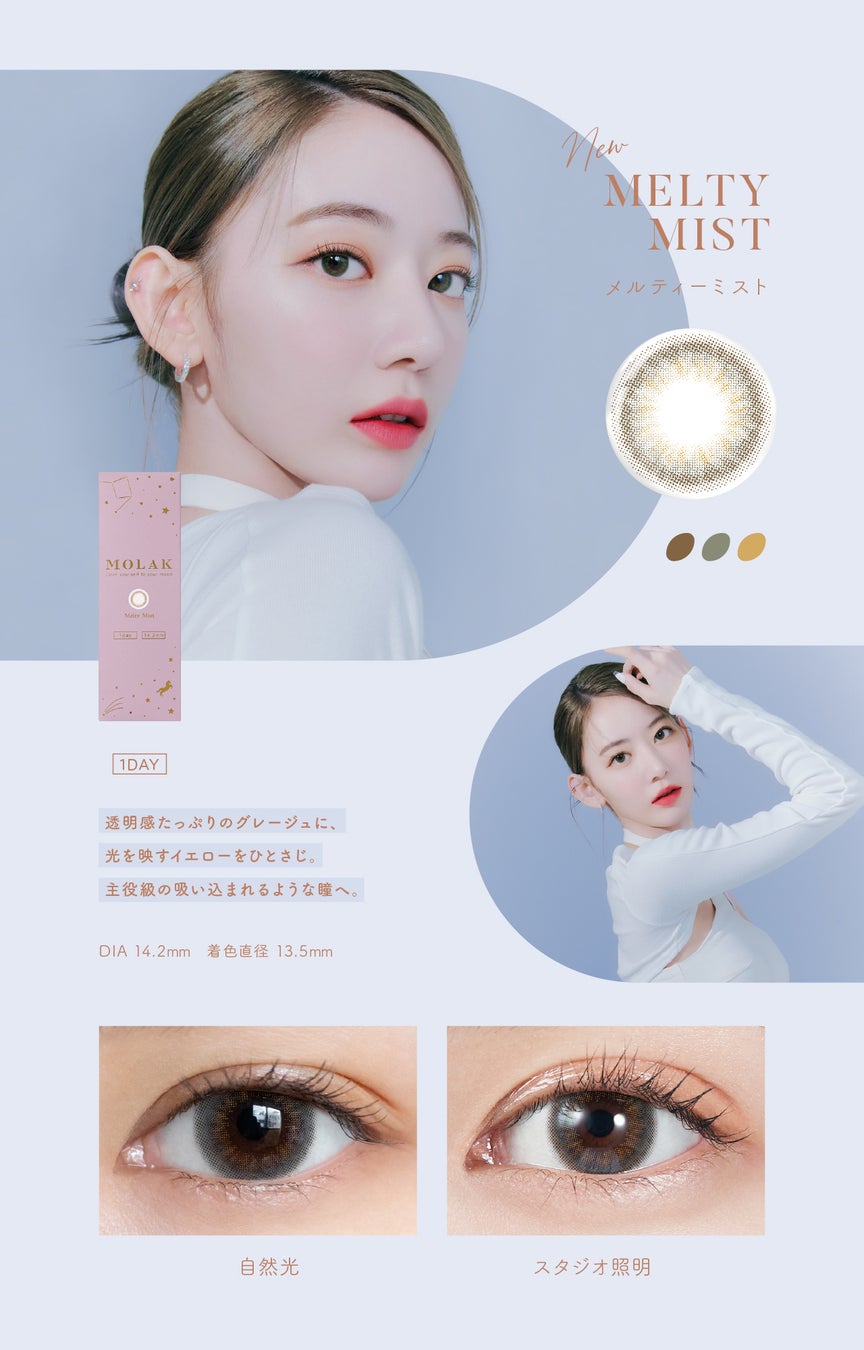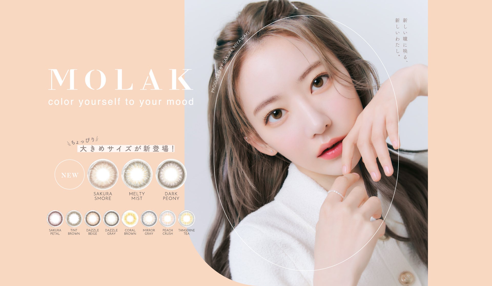 MOLAKは、常に変化する自分の気分に寄り添い、自分らしさを引き立てるカラーコンタクトレンズブランドです。瞳の印象を引き立てるカラーリングと繊細なデザインで、自然な美しさを演出します。