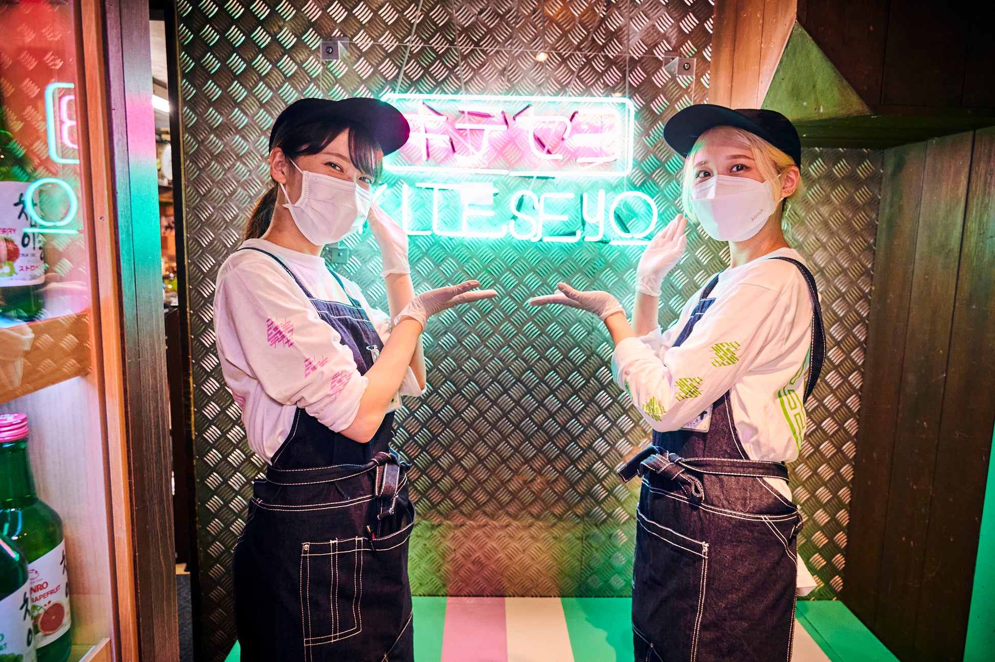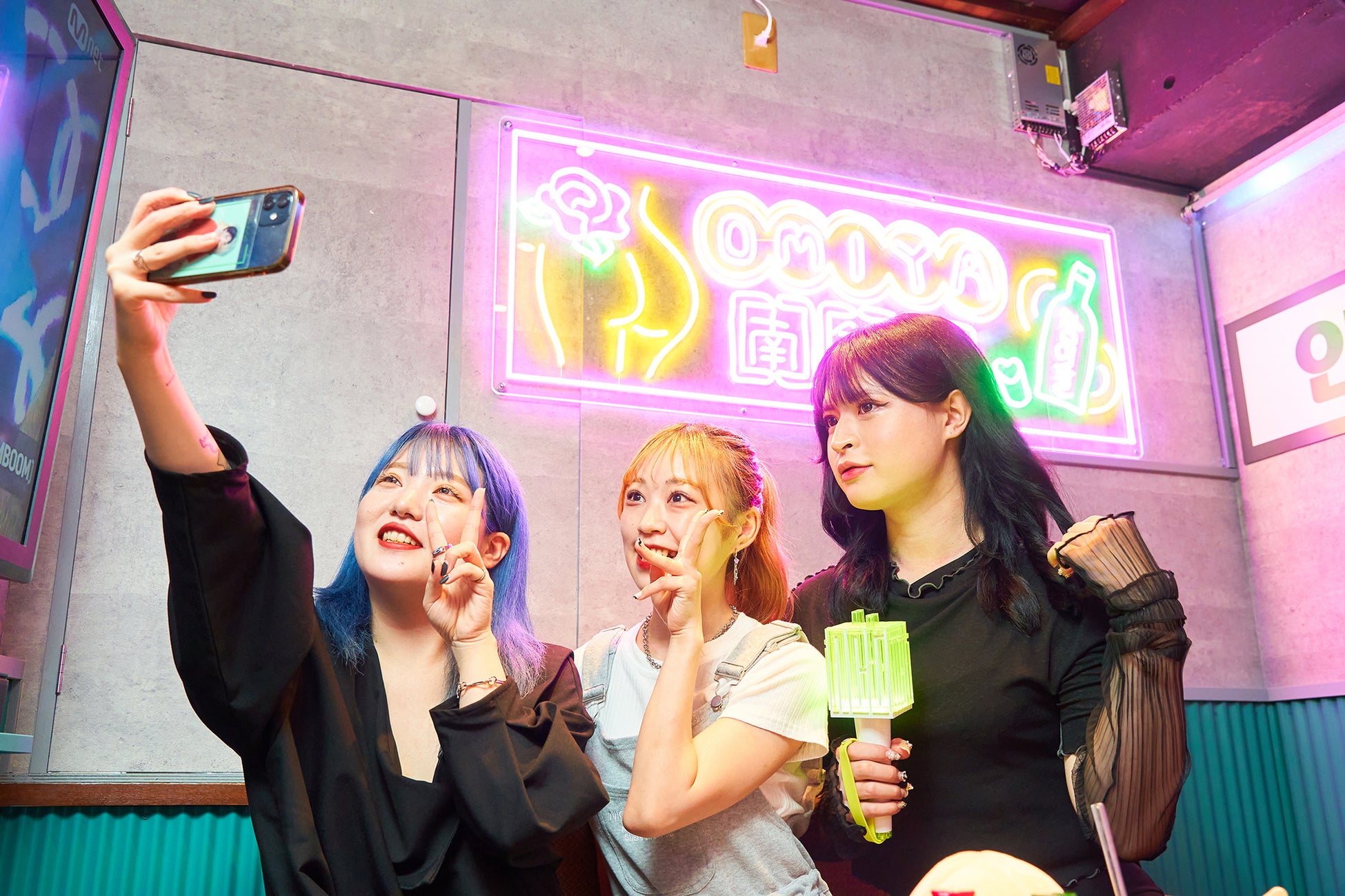 ネオン管、ハングル文字のパネルがあり、自分たちの映え写真も撮り放題!