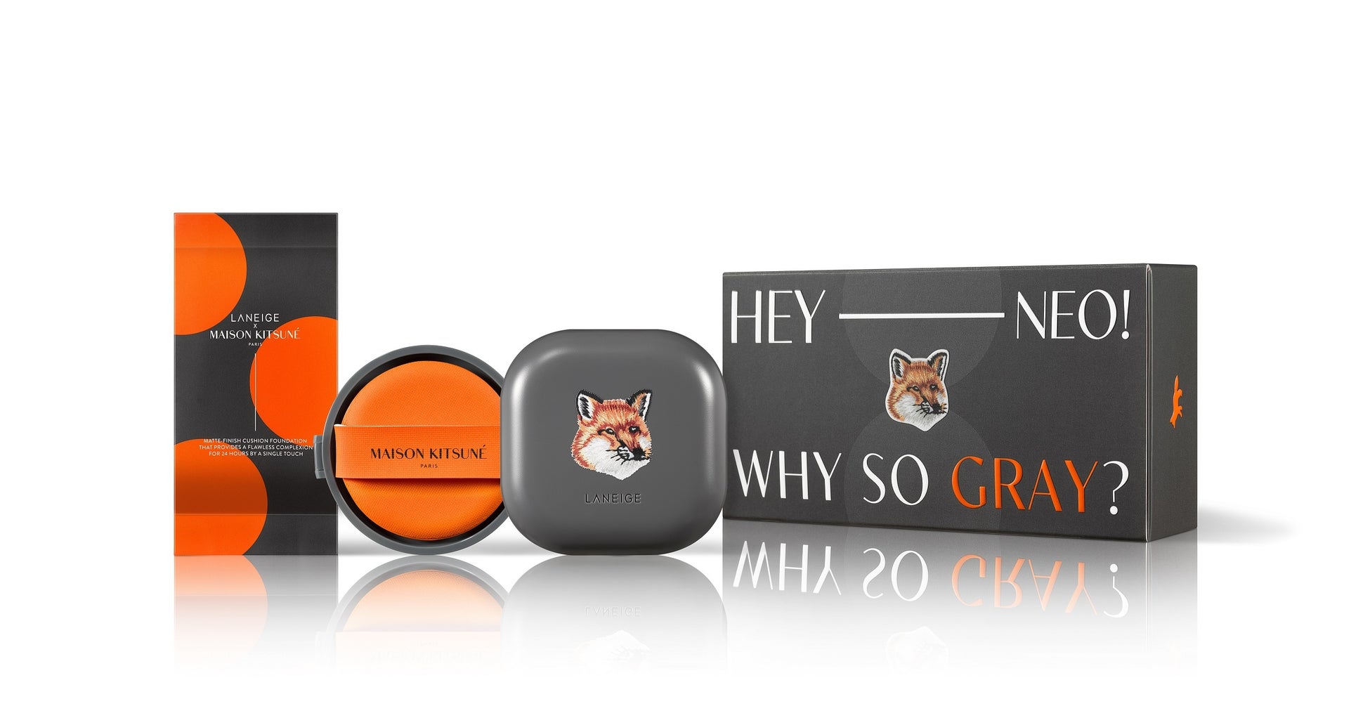 LANEIGEは、ブランドスローガン「FEEL THE GLOW」を掲げ、商品を使用することで人生に輝きや自信をお届けする、ライフスタイルに着目したビューティーブランドです。Maison Kitsunéは2001年にスタートしたフランス・パリを拠点とし活躍するライフスタイルブランドです。ファッションだけでなく、音楽、アートなどの分野にわたりさまざまな活動を行っています。両ブランドともに、ライフスタイルを強く意識していることから、2021年に日本以外の国ではコラボレーションを実施、ネオクッション マットの限定キットを発売し世界中で大人気となりました。2022年は、第2弾のコラボレーションとなりますが、日本ではこの度9月よりLANEIGEが日本進出を果たすことから、初の限定キットの発売となります。今回のデザインにはグレイとオレンジの配色がされています。コロナをはじめとして暗いニュースが社会に溢れる中で、明日への希望を信じていこうという前向きなメッセージを、暗闇から夜明けにさす陽の光を表すグレイとオレンジのカラーで表現しました。そして、日々のファッションにも取り入れたくなるスタイリッシュで洗練されたデザインです。