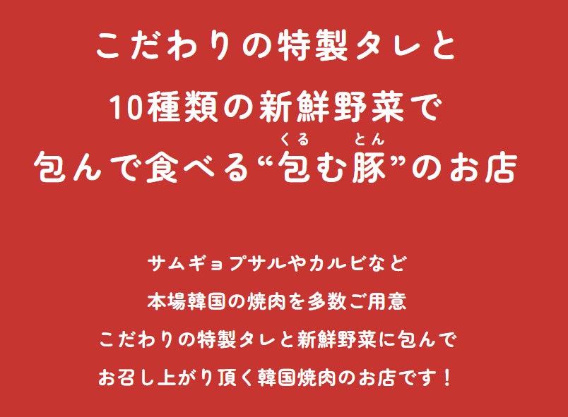 ブランド名「くるとん」の由来は、看板メニューでもあるサムギョプサルのその食べ方“包む豚(くるむとん)”からきており、ロゴマークにも表れています。