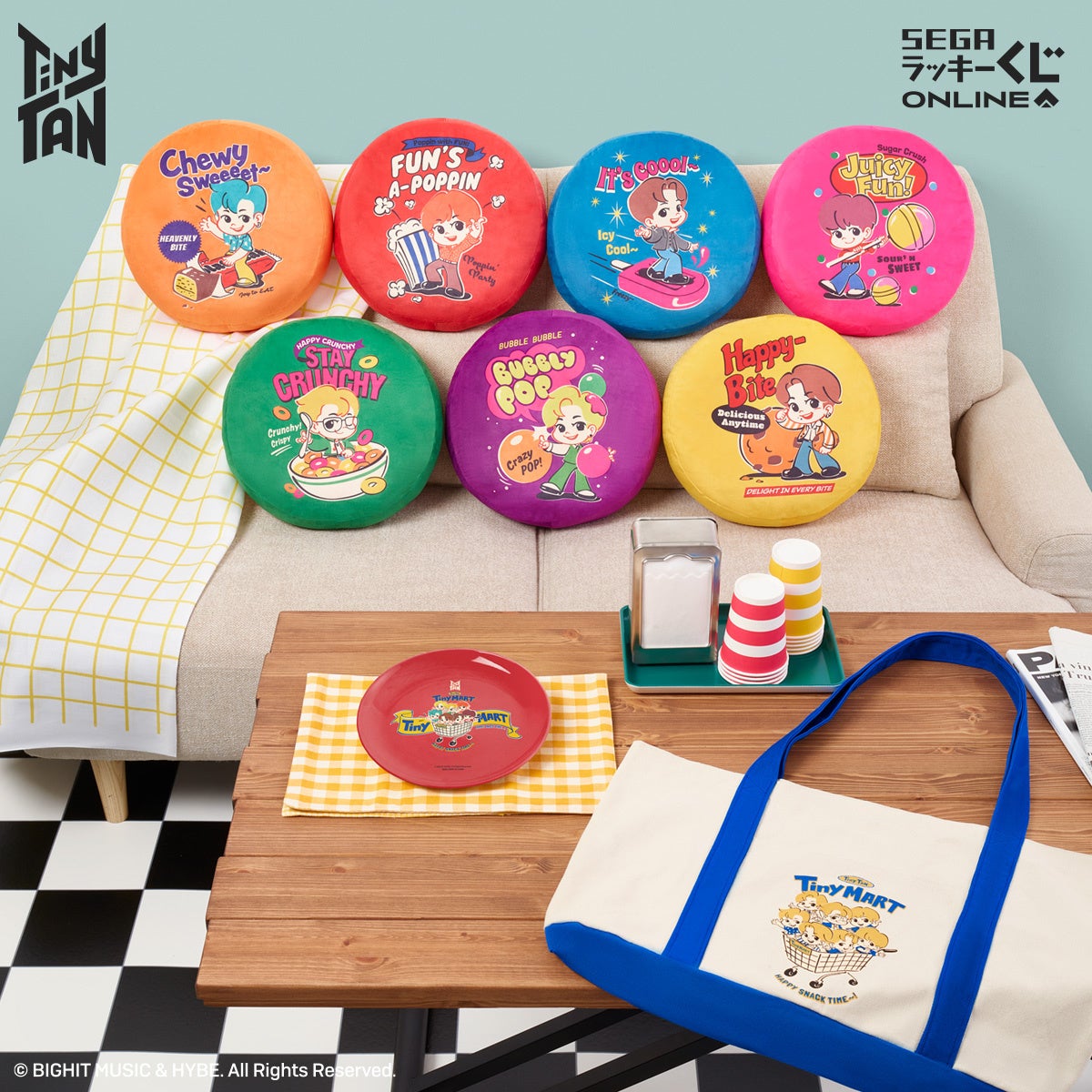 セガ ラッキーくじオンライン「TinyTAN ~TinyMART~」では、BTSのキャラクター「TinyTAN」の、マート(市場)でのお買い物をテーマにしたアイテムがもれなく当たります。