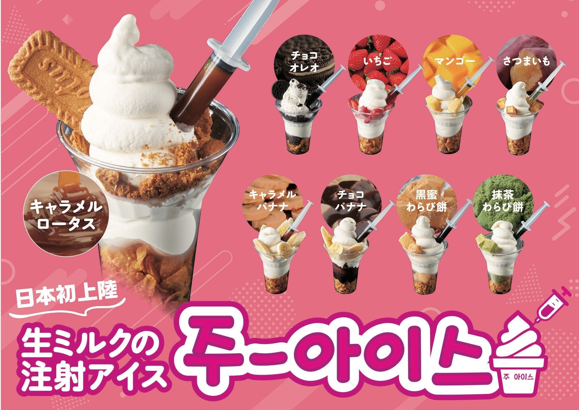 日本初上陸の韓国スイーツ。おいしいアイスはもちろん、注射器を使ってかわいくトッピングも楽しめます。