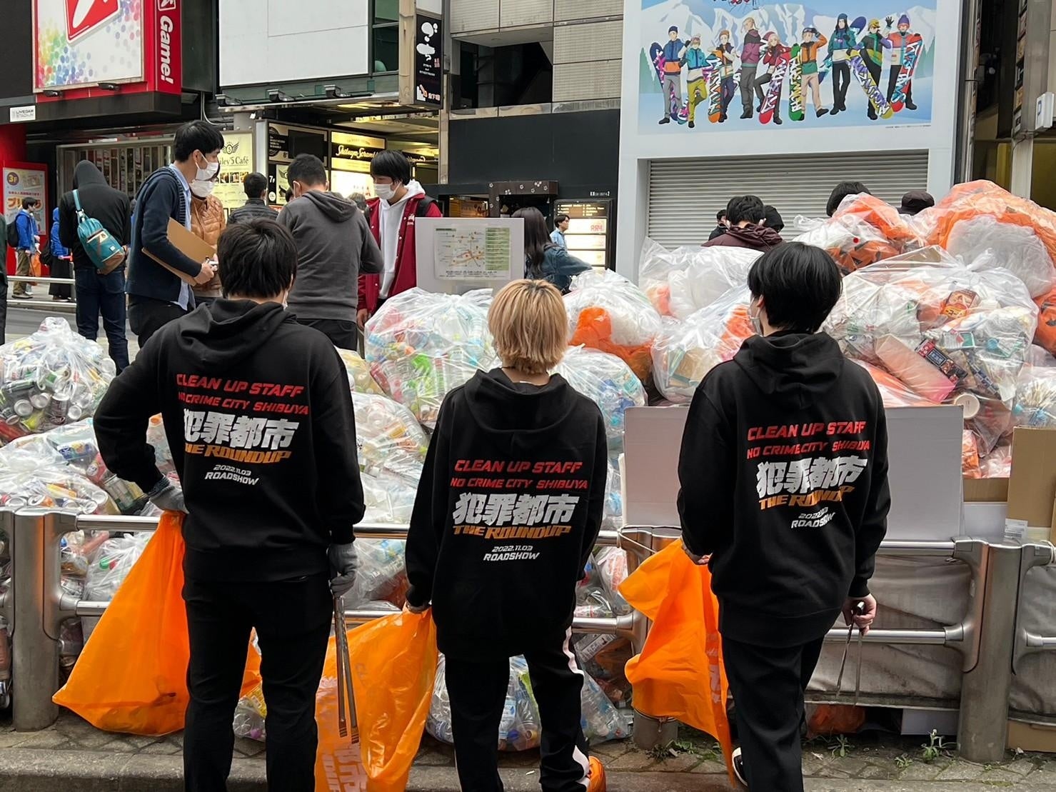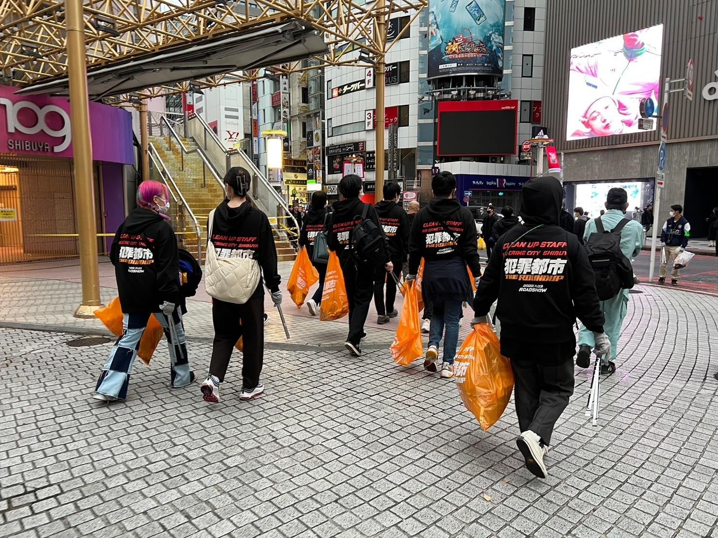 渋谷の街は、毎年ハロウィンの時期に大変な課題に直面します。毎年、マナー啓発のメッセージを発信するものの、路上飲酒、喫煙、ごみのポイ捨てなどはあとを立ちません。しかし、ここ数年、自ら進んでごみ拾いをしてくださる方も増えてきました。僕たちも微力ながら、「渋谷ごみゼロ大作戦2022」に参加し、街の美化に貢献したいと思います。今年は、「犯罪都市 THE ROUNDUP」という世界的に人気のある映画とコラボレーションし、『NO犯罪都市』というメッセージを掲げさせていただきました。少しでも渋谷のハロウィンが地域にとって望ましい姿になることを願っています。