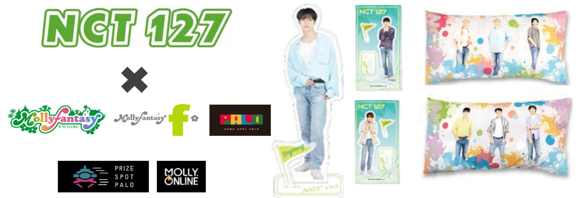 国内外で人気沸騰中の男性ダンス&ボーカルグループ『NCT 127』の今回の限定プライズ・カプセルトイのために撮りおろした写真を使用したアイテムが多数登場。プライズゲーム用景品では「アクリルスタンド」や「バニティポーチ」など6アイテム43種類をラインナップ。「バニティポーチ」ではオンラインクレーンゲーム「モーリーオンライン」限定デザインも登場します。限定カプセルトイでは「うちわキーホルダー」1アイテム全9種類が登場。「モーリーオンラインスクラッチ」では「壁掛け時計」や「コンパクトミラー」など6アイテム40種類を展開します。