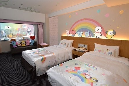 BT21のコラボレーションルームがホテルニューオータニ東京・大阪の2大都市にて期間限定で誕生!360度、BT21に囲まれた豪華な空間をご用意。ここでしか手に入らない全6種のオリジナルグッズつき。