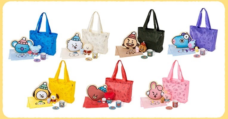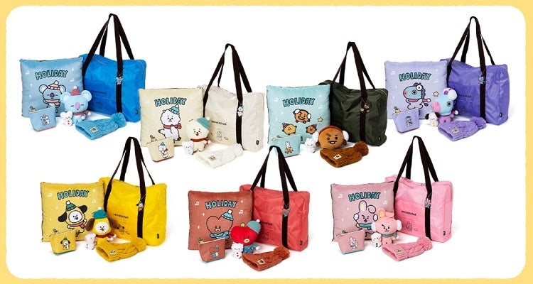 テーマはPlay in the winter!ニットやマフラー姿のBT21に加え、雪だるま姿になった愛らしいバディーたちが登場。LINE FRIENDSオンラインストアではマグカップやタオルなどおうちで楽しめるアイテム、LOFTではポケッタブルのボストンバッグやニット帽など外でのお出かけに活躍するグッズが中心の7点セットです。