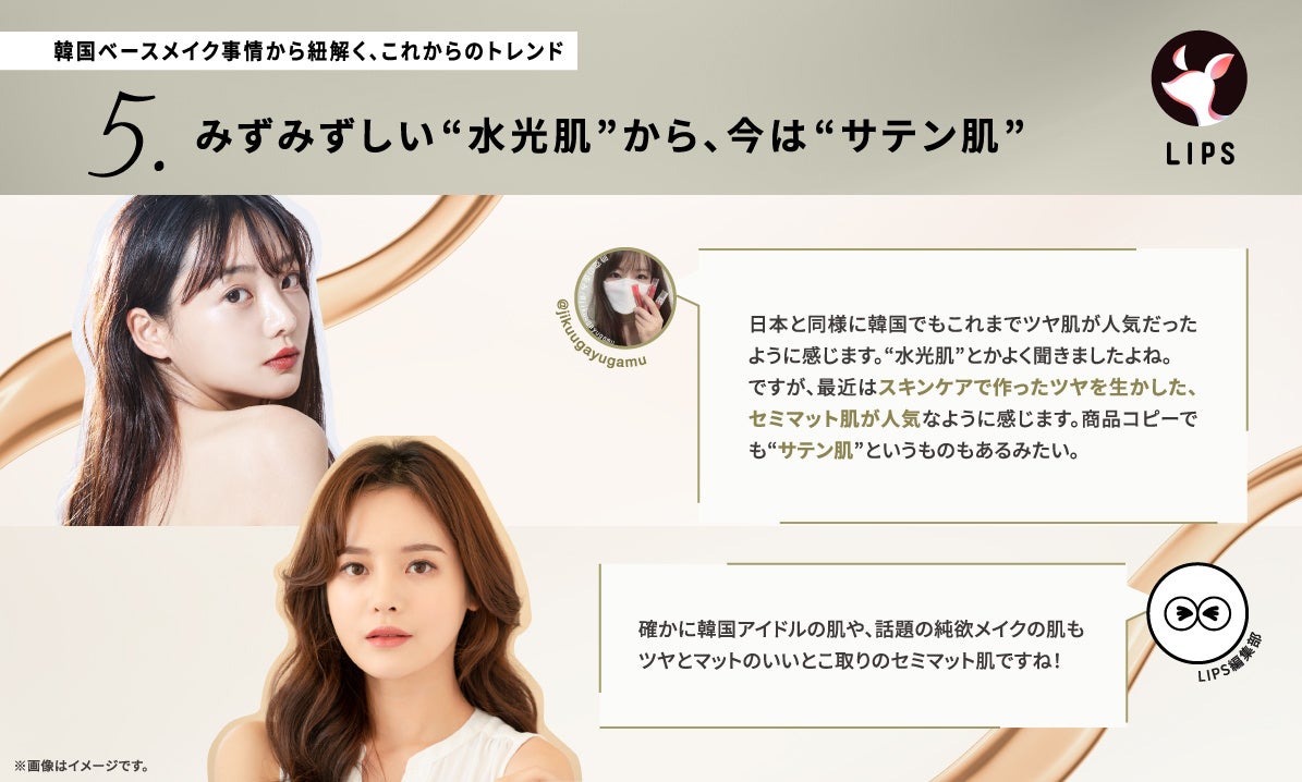 スキンケアで作ったツヤを生かすことが、韓国ベースメイクの定石であることからも、サテン肌はこれからも引き続き人気が続きそうと考察できます。