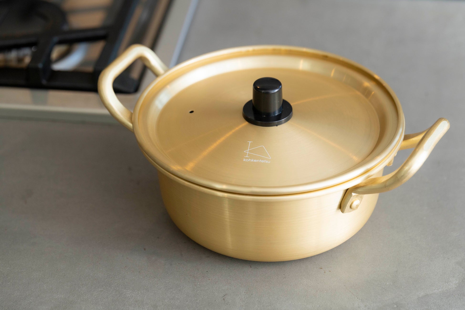 YouTubeフォロワー数167万人の人気料理家コウケンテツオリジナルの刻印入りアルミ鍋は、直径16cmで1~2人分の料理に使えるちょうどいいサイズ。