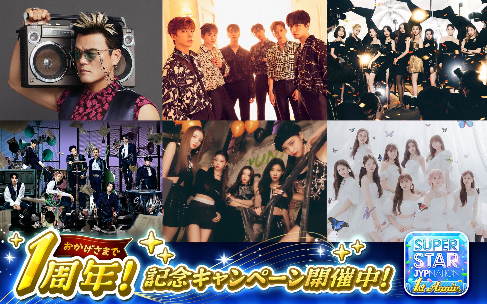株式会社DalcomSoft Japanは、J.Y. Park、2PM、TWICE、Stray Kids、ITZY、NiziUが所属する、JYP エンターテインメントの公式リズムゲームアプリ『SUPERSTAR JYPNATION』(公式サイト:https://superstarjyp.jp)において、おかげさまでサービス開始より1周年を迎えることを記念して、本日(2023年3月23日)より1周年記念イベントを開始したことについてお知らせいたします。