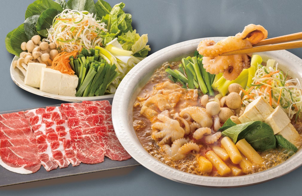 | 【しゃぶ葉「旨辛!韓国フェア」おすすめポイント】 ①暑い夏に食欲そそる“旨辛”韓国グルメを心ゆくまで楽しめるお得な食べ放題コースしゃぶ葉初登場!トレンドのプリプリ「チュクミ(イイダコ)」や「国産牛」等を「ユッケジャンだし」で味わう。②トッポギ、のび~るチーズやヤンニョムだれなどで韓流アレンジも自由自在 ユッケジャンラーメンやピンスなど、〆やデザートも含め多彩なオリジナルアレンジを楽しめます。 |