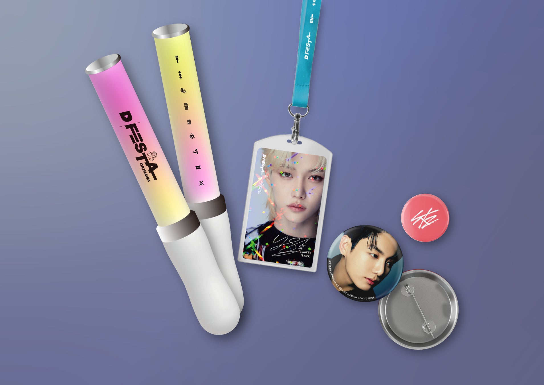 花火ライブ『D’FESTA OKINAWA Fireworks Live』の入場特典が発表されるとたちまち「豪華すぎる!」と話題に。チケット購入者には、ペンライト1点、好きなグループのピンボタンが当たるガチャメダル1枚、ホログラム仕様のチケットフォトカード1枚(ネックストラップ+ハードケース付き)がプレゼントされます。