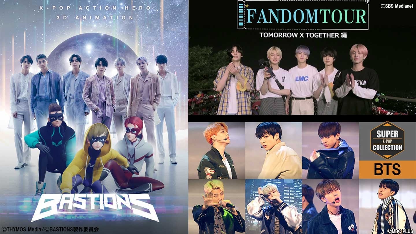 世界的アーティストBTS がOSTタイトル曲を歌うK-POP 3Dアニメーション「BASTIONS」、BTSの弟分として2019年にデビューした5人組ボーイズグループTXTがアイドルの聖地巡礼マップを作成していくリアルバラエティ番組「FANDOM TOUR」、BTSのステージやバラエティ番組までの姿が詰まった「K-POP SUPER COLLECTION -BTS-」を4日間に分けて放送する。