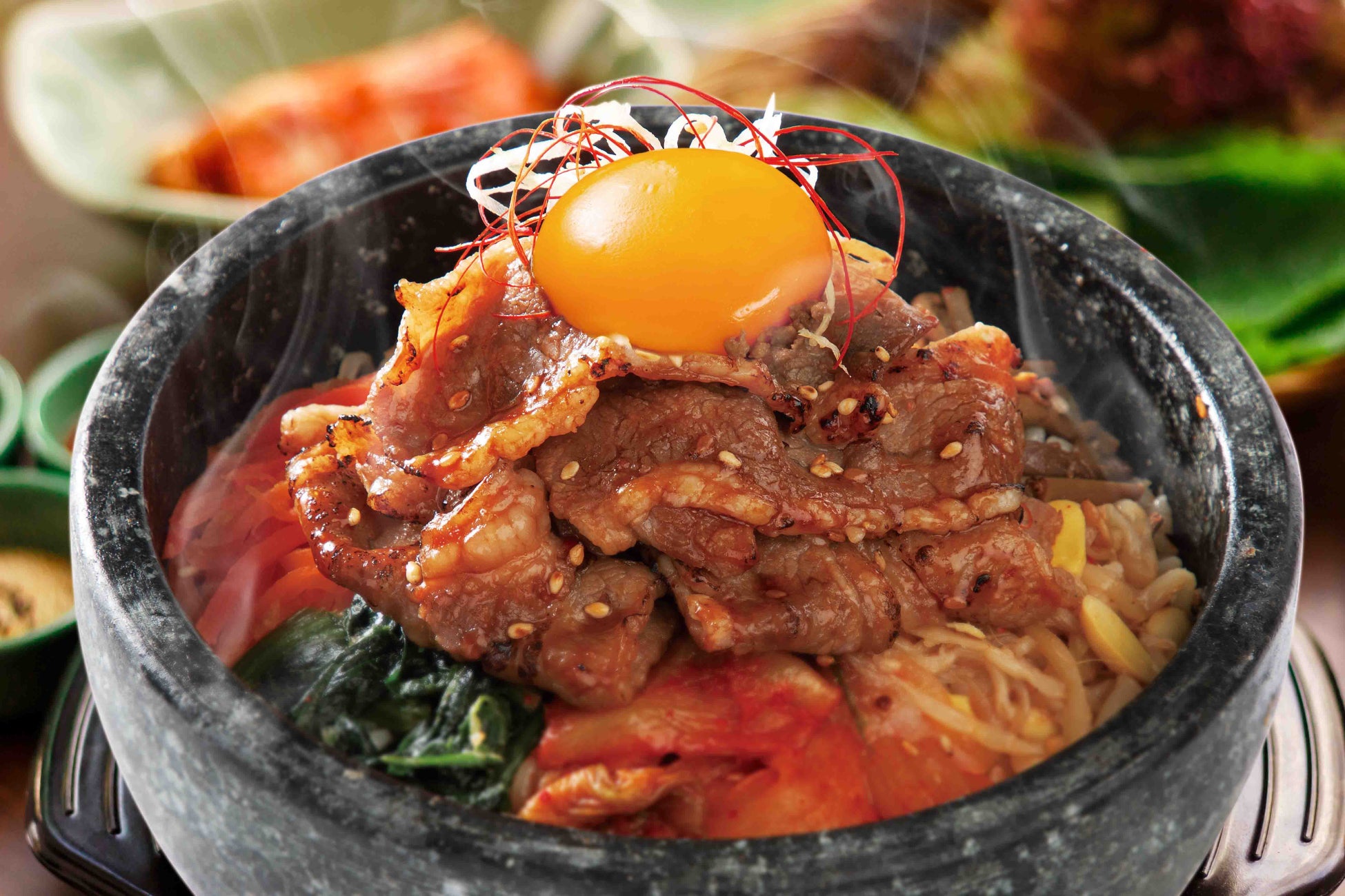「ビビンバ」は韓国生まれの“混ぜるごはん”。「石焼ビビンバ」は、熱した天然石の器に入ったごはんの上に野菜・キムチ・卵・牛肉・海苔などを乗せ、アツアツを混ぜながら食べる料理です。