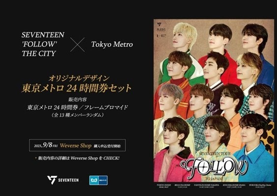 大人気K-POPグループのSEVENTEENとタイアップしたSEVENTEEN×東京メトロオリジナル24時間券(以下「オリジナル24時間券」)と当社が提供するコンテンツプリントサービスこんぷりんの限定フレームブロマイドのセット商品は2023年9月8日(金)からSEVENTEEN Weverse Shop JAPANにて販売が開始されます。