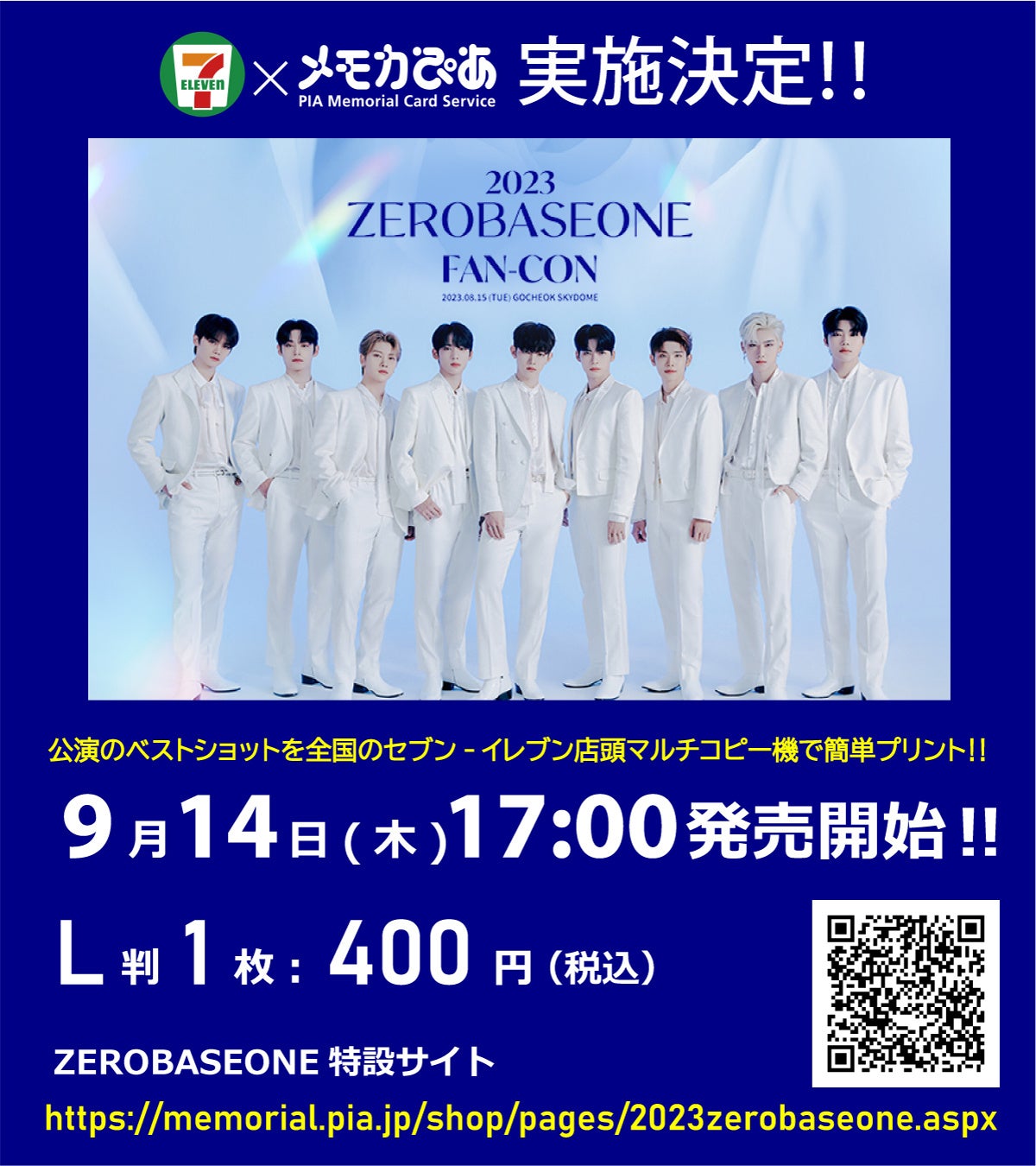 今回のセブン×メモカ販売は、ZEROBASEONEの公演の様子を収めた各メンバーのソロカット、グループショットなど111点で構成されています。 ZEROBASEONEのメモカは、全国のセブン-イレブン2万店のマルチコピー機を通じて購入できます。