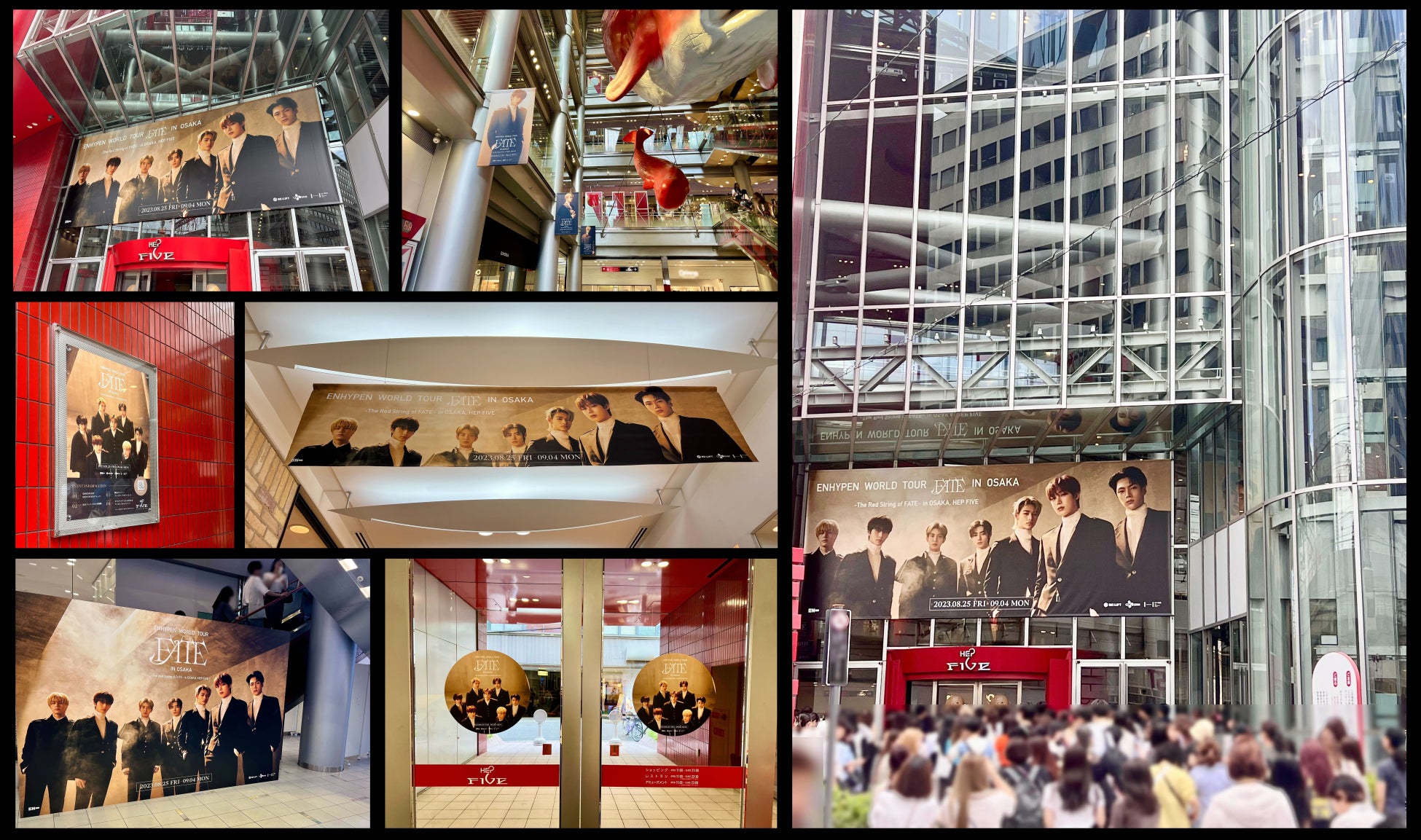 大阪・梅田のランドマークである商業施設 HEP FIVEでは、8月25日~9月4日までの11日間、ENHYPENが館内をジャック。いたるところにENHYPENの大型フラッグや大型フォトパネル、等身大パネルが登場し、ENHYPENの楽曲が館内BGMとして流れました。期間中、HEP FIVEは数多くのファンで賑わいを見せ、館内で対象となるショッピングをすると限定セルフィーフォトカードがプレゼントされるキャンペーンにも多くのファンが参加し、合計約2万枚のフォトカードが配布されました。