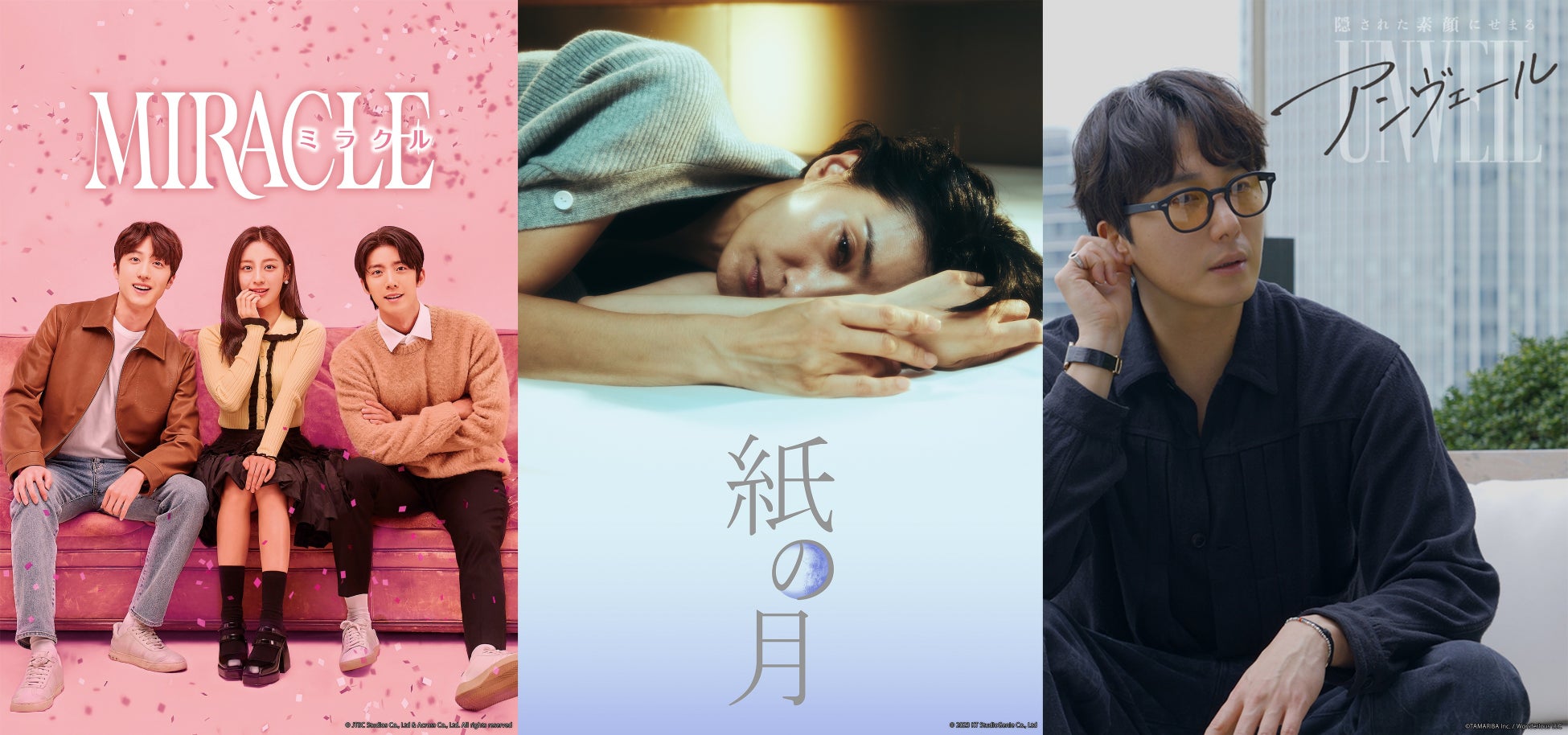 Leminoでは数多くの韓流ドラマを配信しております。今回は、大人気ドラマの中から「MIRACLE/ミラクル」「紙の月」、そして2023年9月15日(金)より配信開始されたドキュメント番組「アンヴェール」のオリジナルグッズが当たる豪華プレゼントキャンペーンを実施いたします。「MIRACLE/ミラクル」は、人気K-POPグループSF9のチャニ&フィヨン主演で、「梨泰院クラス」など多くの大ヒットドラマを生み出してきた韓国SLL社(前:JTBCスタジオ)の作品です。「紙の月」は、角田光代のサスペンス小説を原作とし、ネット配信とテレビ放送を同時公開するなど、韓国で人気のある作品です。「アンヴェール」は、俳優チョン・イルの隠された素顔に密着するドキュメント番組です。
