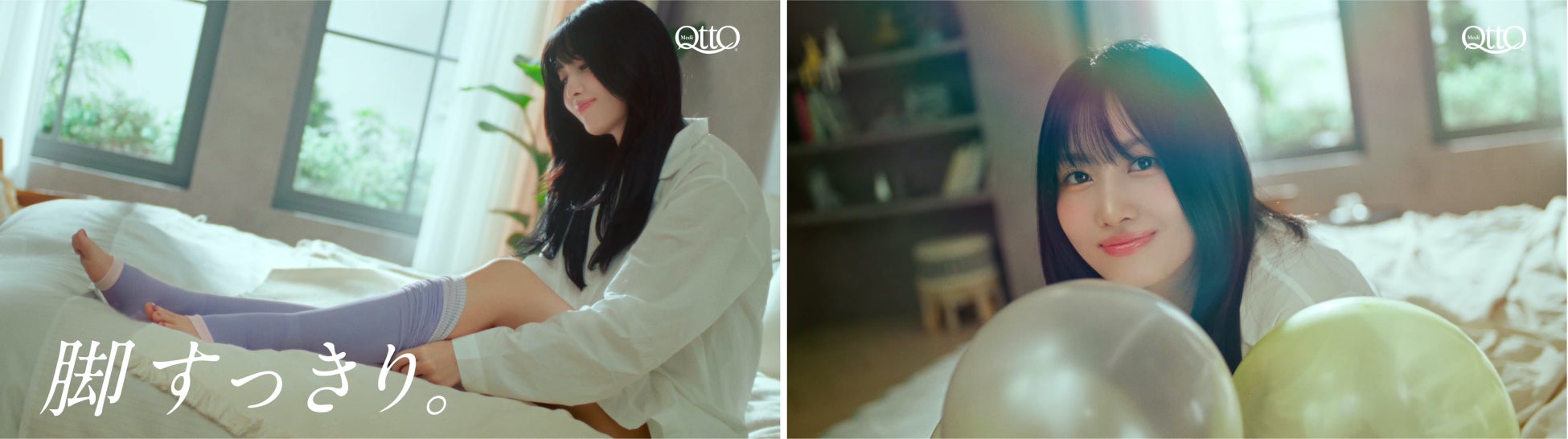 新TVCMでは、アジア発9人組ガールズグループTWICEのメンバーMOMOさんが、「すっきり」と「うっとり」をテーマに、目覚めてすぐ脚をリズミカルに動かす「バルーンダンス」を披露。美しく軽やかに踊るMOMOさんを通して、寝ながらメディキュット フルレッグを履いた脚のすっきり感とうっとりした朝の気分を表現しています。「バルーンダンス」を踊るMOMOさんの美脚とキュートな表情にご注目ください。