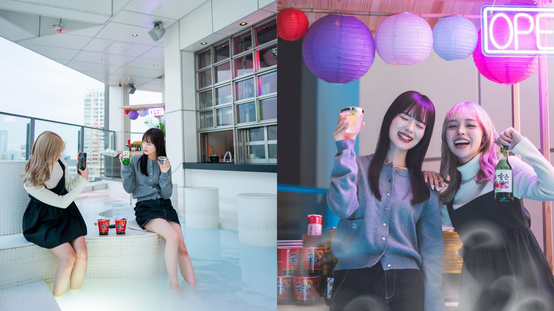 渋谷の街を大パノラマで一望しながら足湯を楽しめ、辛ラーメンやコムタンスープ、スンドゥブなどの韓国料理食べ放題やマッコリやチャミスルを始めとした韓国ドリンクを楽しめる新たなホットスポットとなる。