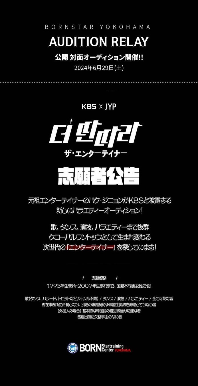 そこで6月29日(土)にボーンスタートレーニングセンター カンナム(韓国)とボーンスタートレーニングセンター横浜(日本)で公開の対面オーディションが開催されることになりました。