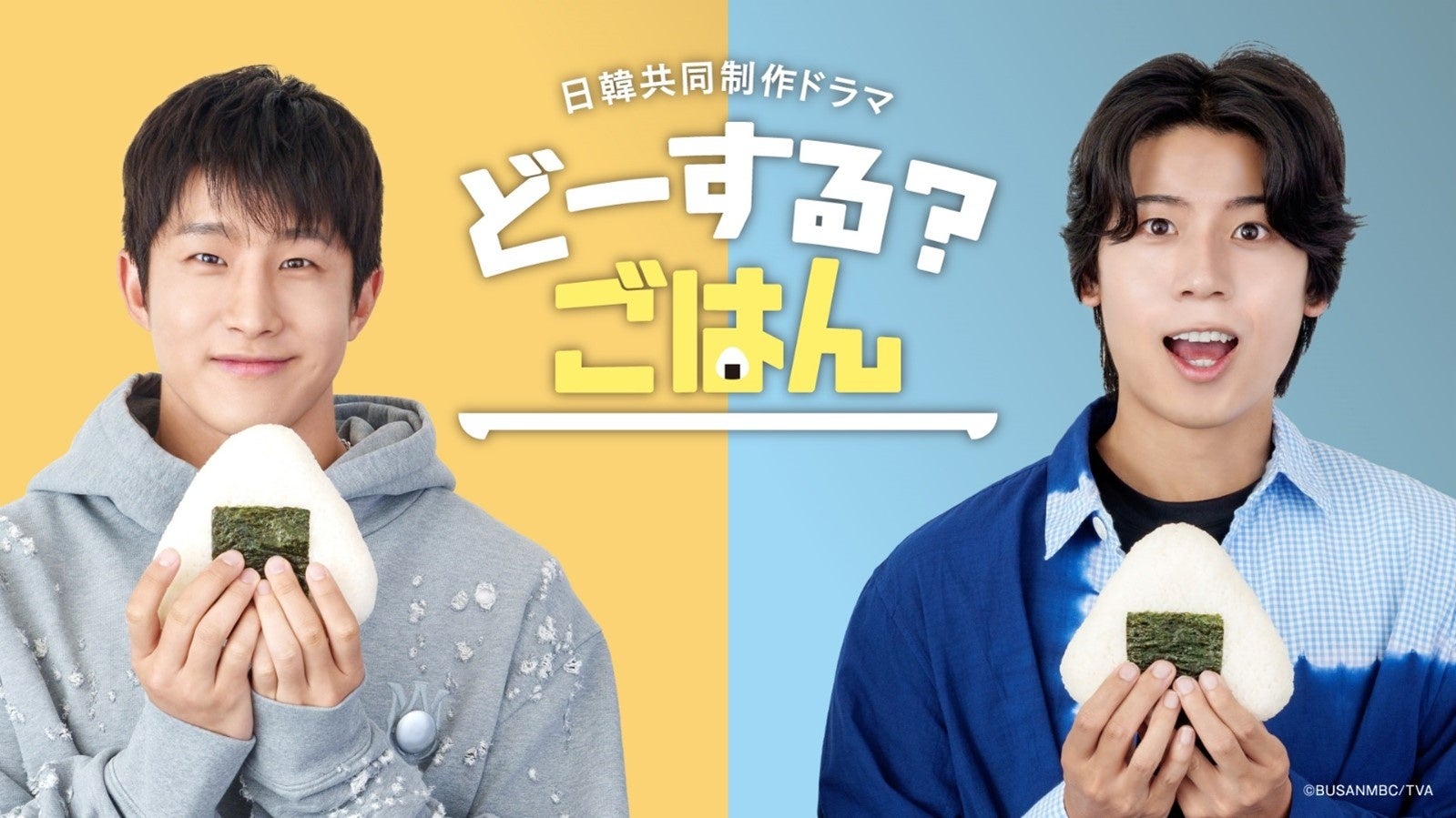 テレビ愛知と韓国・釜山MBCが制作する連続ドラマ『오늘은 뭐묵지? (日本タイトル:どーする?ごはん)』の日本編のメインビジュアルが完成しました。主役を務める、韓国の人気アイドルグループ、ASTROのJINJINさん、そしてBOYS AND MENの吉原雅斗さんが、ドラマ内で毎回登場するキーシンボル「おにぎり」を手にしたビジュアルです。また日本編には、SEAMOさん、SKE48、桃月なし子さん、平野莉玖さんなど、各方面で活躍中の話題の方々が登場します。SEAMOさんには、出演だけでなく、作品のクライマックスで主役2人が歌う楽曲のラップ部分を作詞していただきました。