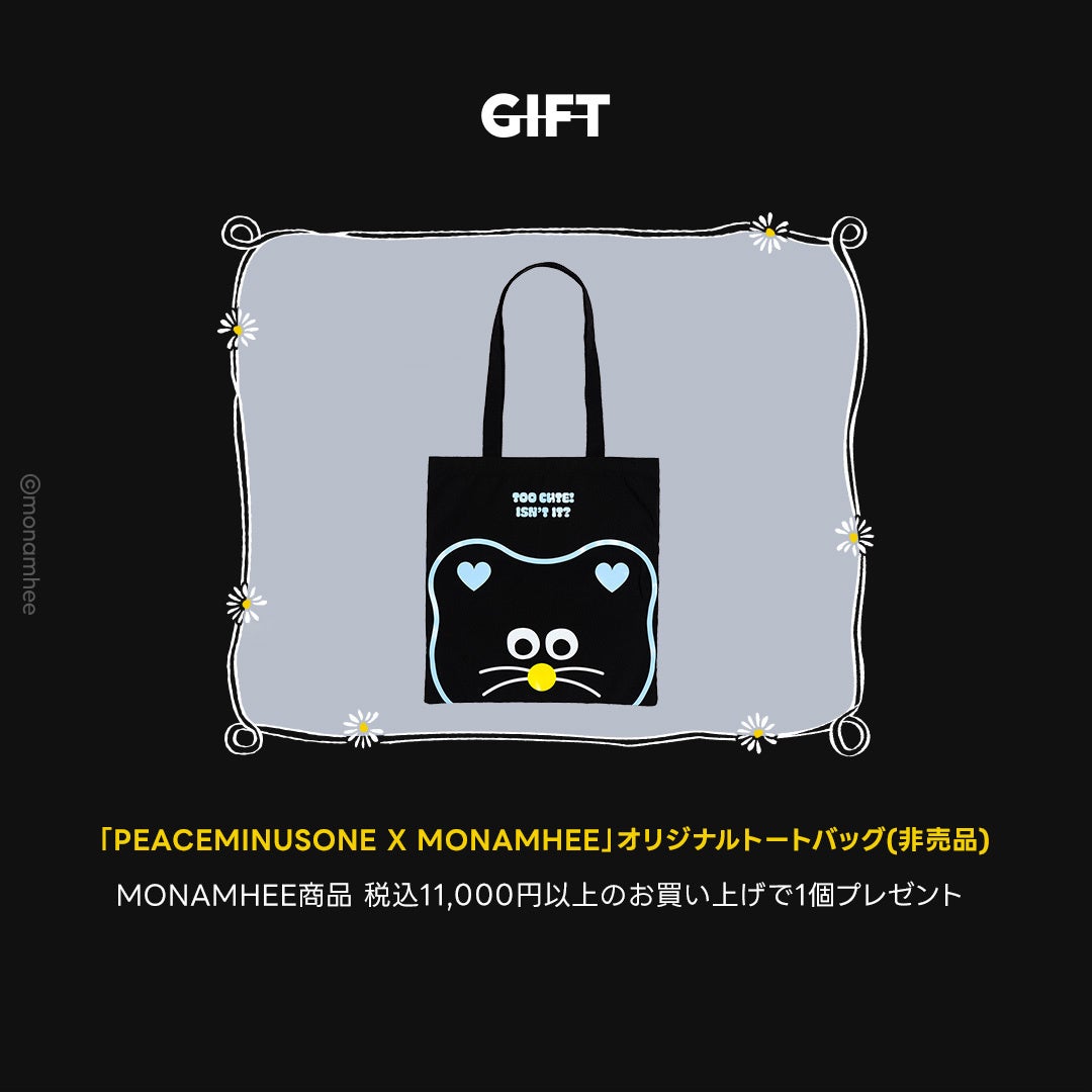 POP-UP会場にてMONAMHEE商品を税込11,000円以上購入された方に「PEACEMINUSONE X MONAMHEE」オリジナルトートバッグ(非売品)を1個プレゼント