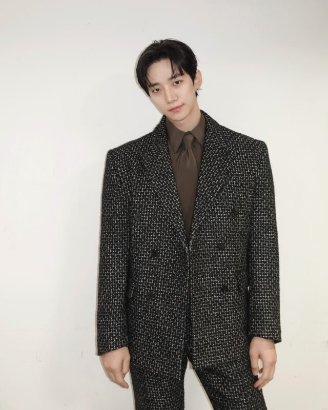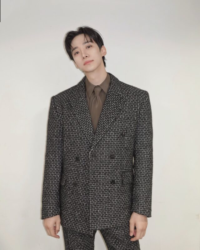 またジュノは、あたたかそうなチェックのスーツを着こなしてダンディな魅力も公開した。