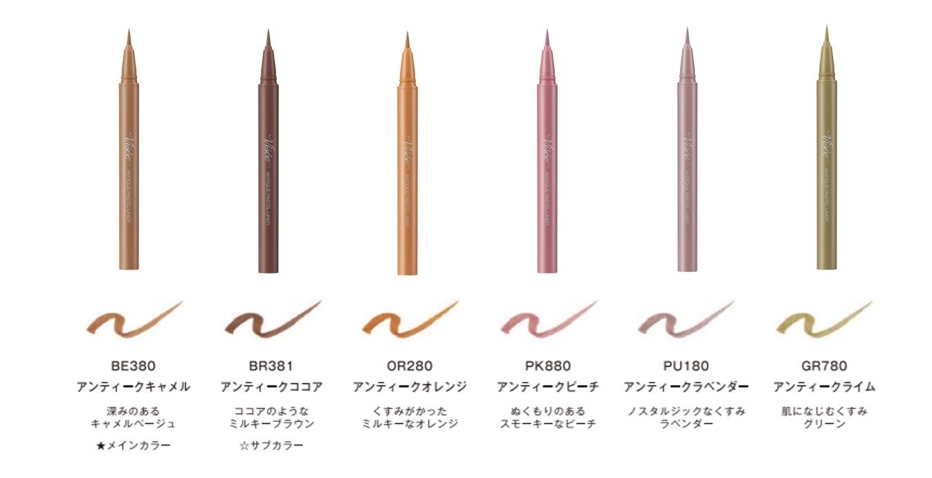 やわらかいくすみカラーで目もとを遊べるアイライナー。 高発色とくすみ感を両立した、肌馴染みの良いミルキーなアンティー クパステルカラー全 6 色をラインナップ。