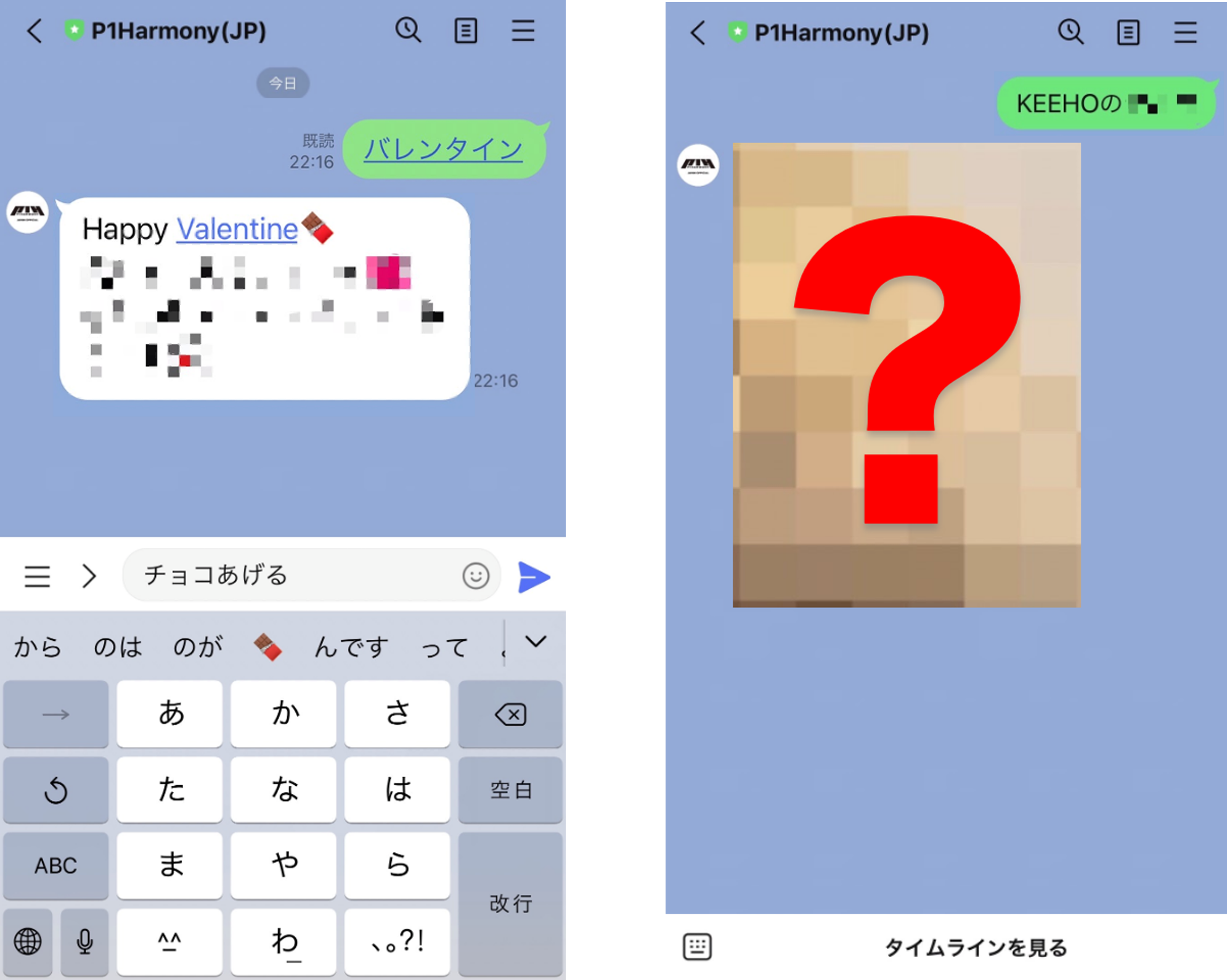 「P1Harmony」のLINE公式アカウントで、ユーザーがトークルームに「バレンタイン」と送信すると、メンバーとのスペシャルな会話がスタート。