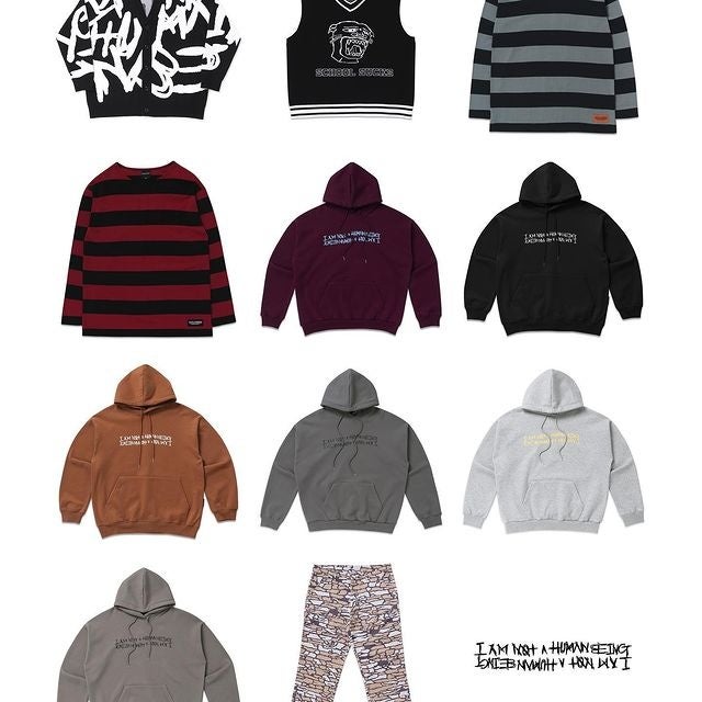 I AM NOT A HUMANBEING(アイアムノットアヒューマンビーイング)は、韓国出身の若手デザイナーLil Deezyにより、ソウルを拠点とし設立されたブランド。ソウルのユースカルチャーシーンをデザインに落とし込んだアイテムが特徴的。60%で日本初上陸を果たすこととなった。