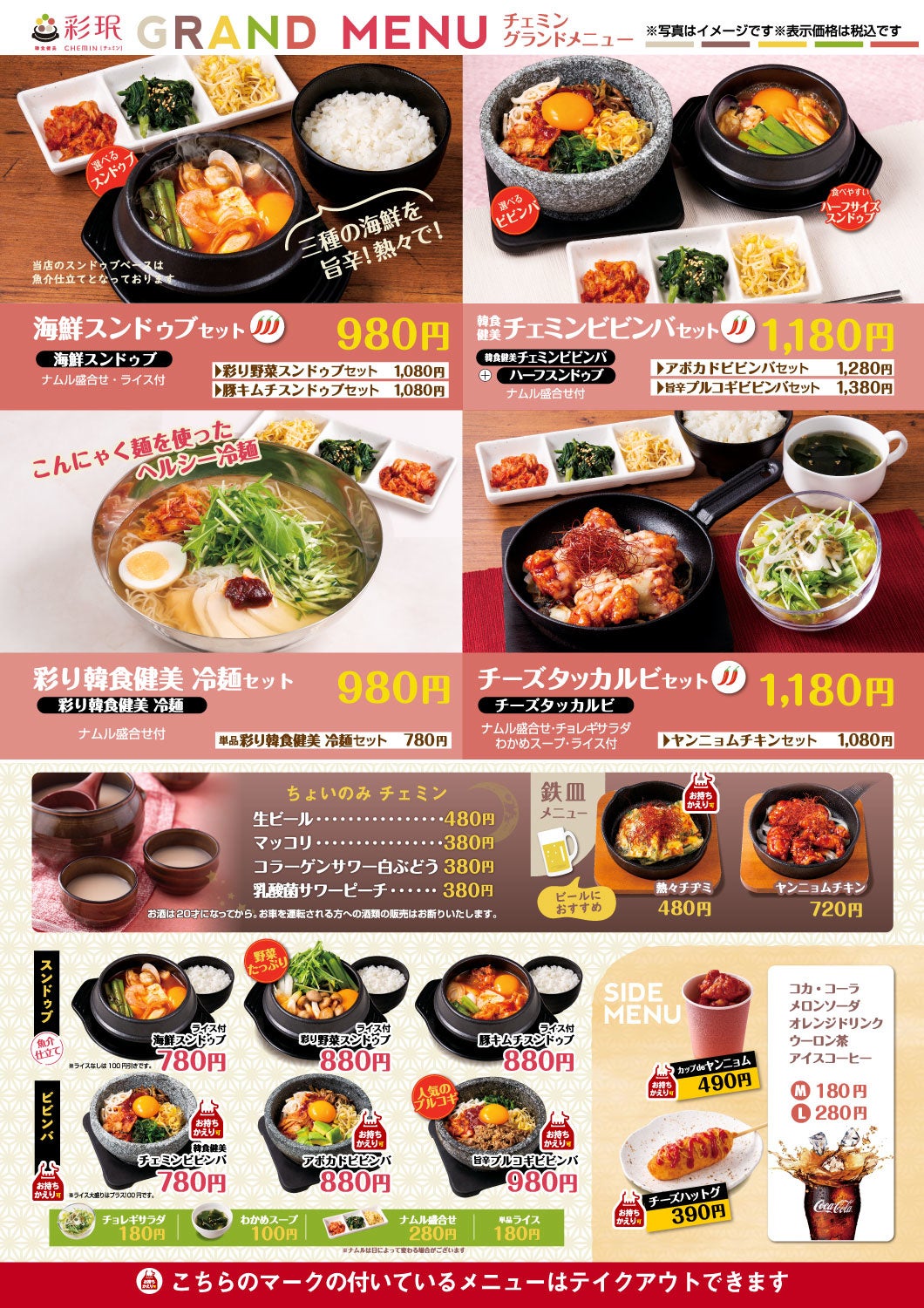 ※韓食健美 彩珉(チェミン) モザイクモール港北店とはメニューが異なっております。