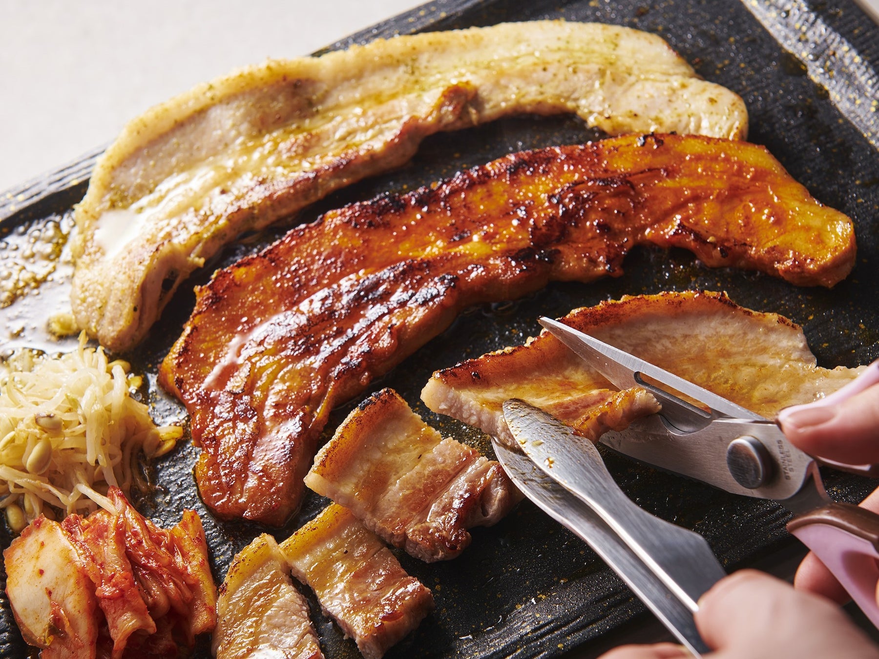 韓国料理専門店でイチオシメニューは、15種類の新鮮野菜でお肉を包んで、こだわりの自家製ダレに付けて食べるサムギョプサル。ブランド名「くるとん」の由来は、その食べ方“包む豚(くるむとん)”からきています。