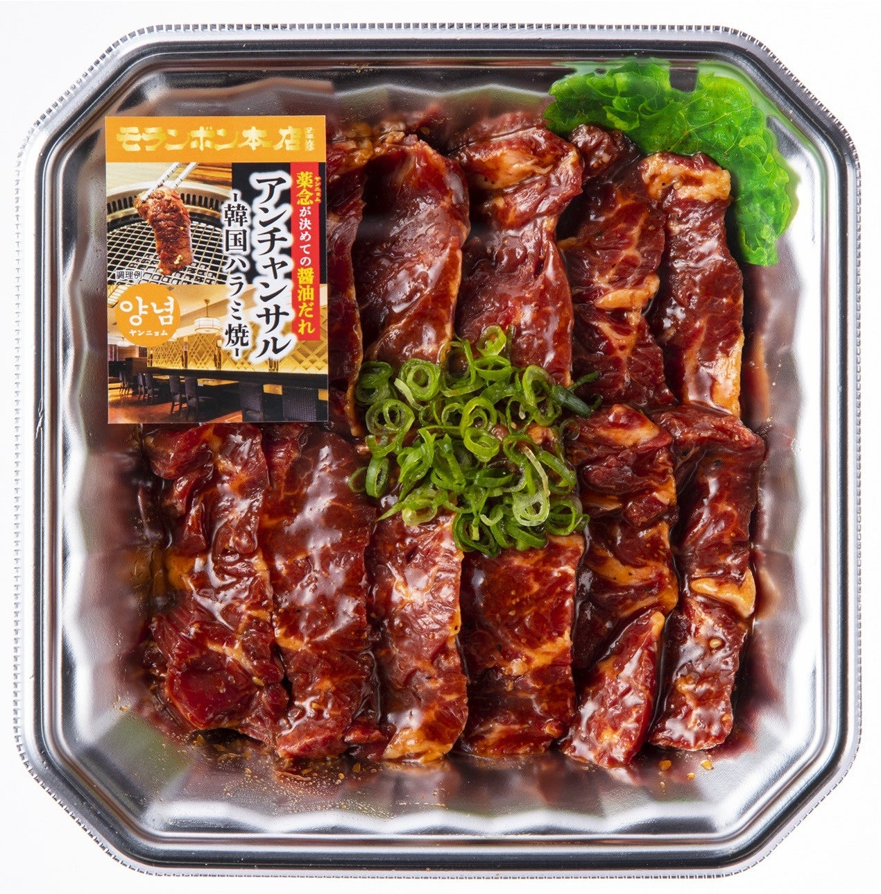 二ンニクや唐辛子、ごま油のほか香味野菜や果物・香辛料を絶妙にブレンドした味の決め手となるモランボン本店こだわりのヤンニョム(薬念)をベースに味付け。つけダレ不要で、焼くだけで美味しく召し上がっていただけます。