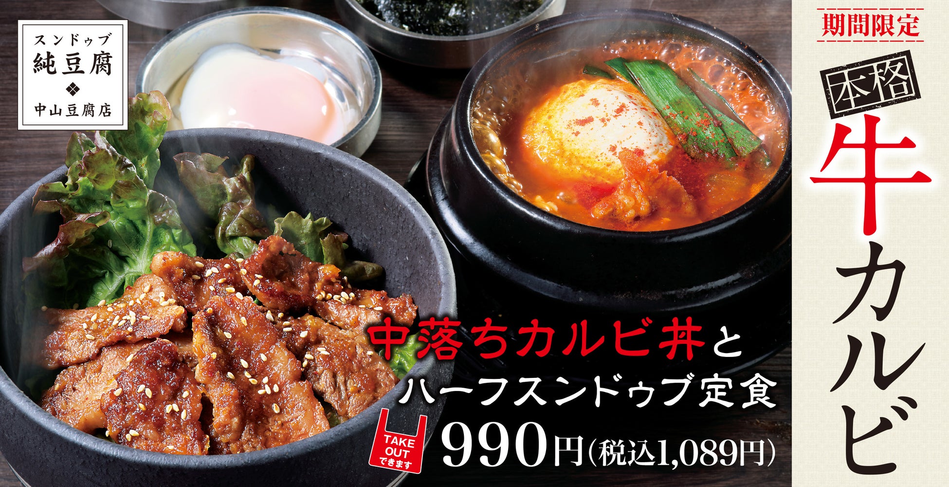 活動的になる春にふさわしく、お腹いっぱい笑顔で元気になっていただきたいと考え「中落ちカルビ丼とハーフスンドゥブ定食」を期間限定で販売いたします。
