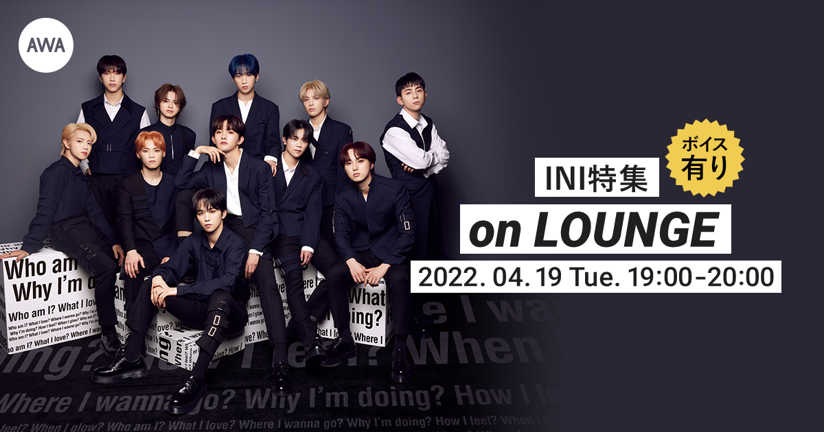 AWA株式会社が運営する、サブスクリプション型(定額制)音楽ストリーミングサービス「AWA(アワ)」は、2022年4月19日(火) 19:00~20:00の1時間に渡り、オンライン空間「LOUNGE(ラウンジ)」で、INIの特集イベントを開催いたします。