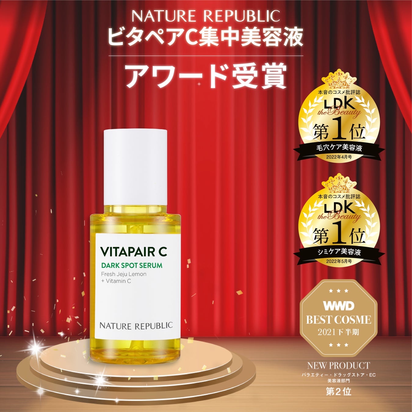 「LDK the Beauty」毛穴ケア・シミケア美容液部門で、ベストバイ1位を受賞した(※1)ネイチャーリパブリック自慢の美容液。