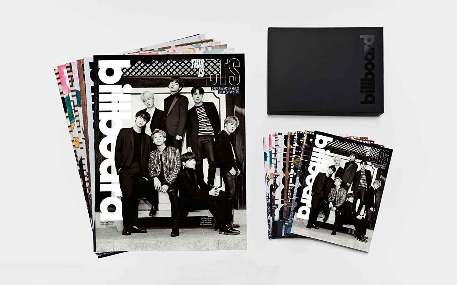 ヒットチャートの世界的ブランド・billboardが2018年2月にBTSを表紙にした8冊ボックスセット「billboard BTS limited-edition box」をアメリカにて販売したところ20分で完売。その後、ファンから再販のリクエストがあったこの限定セットを光文社が販売します。 BOXセットにはグループ表紙1パターンと、各メンバーが表紙の7パターンの計8冊がオリジナルカバー冊子として収められており、それぞれグループ、各メンバーの特大ポスターも付録としてついている貴重なセットです。