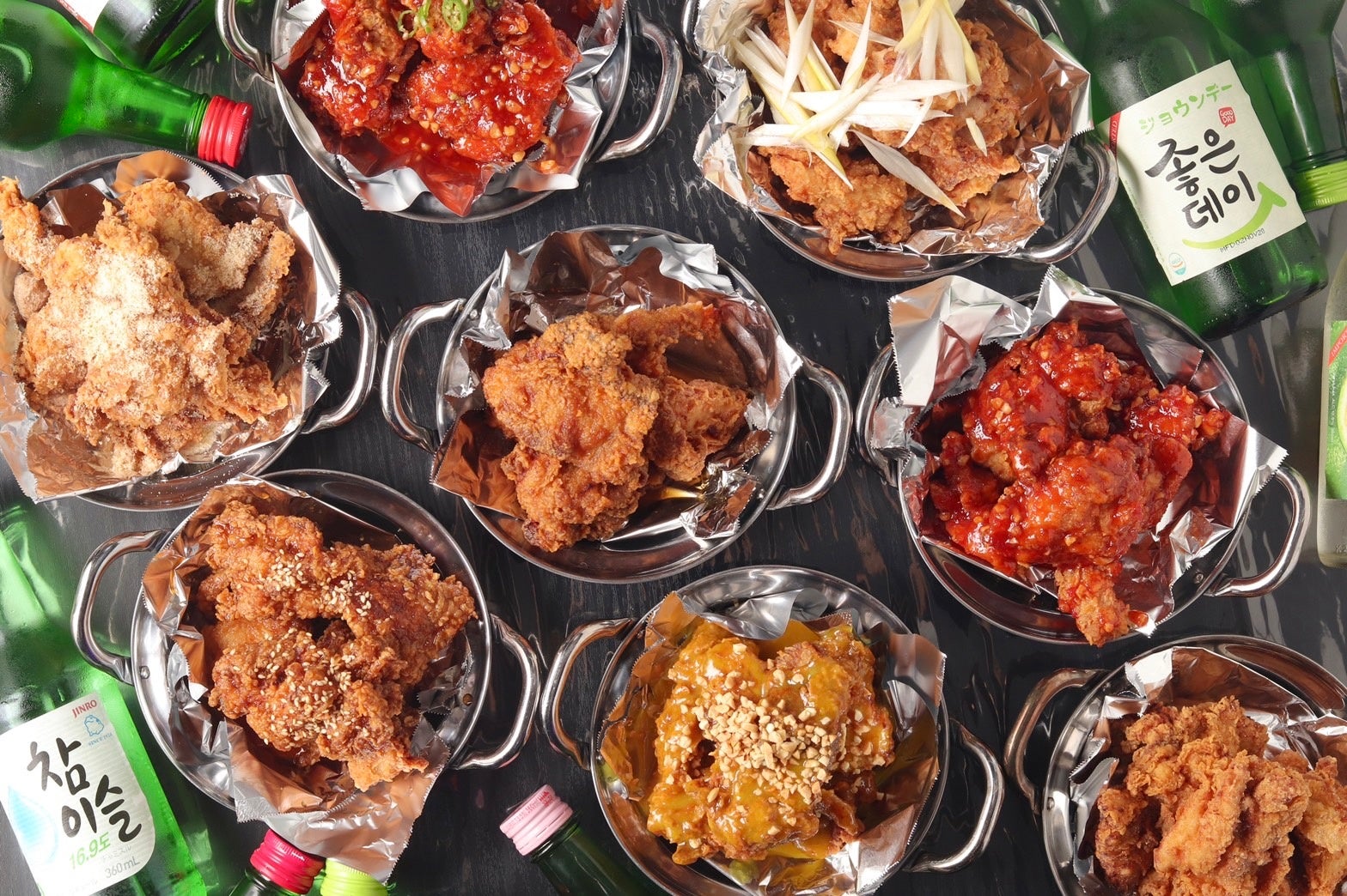 まにぽぽの看板メニューである根強い人気の韓国フライドチキンは、ザクザクで食べごたえ抜群。まにぽぽ特製のフレーバーはどれを選んでもチキンと相性がよく、当店自慢の一品です。フレーバーは下記の7種類よりお選びいただけます。