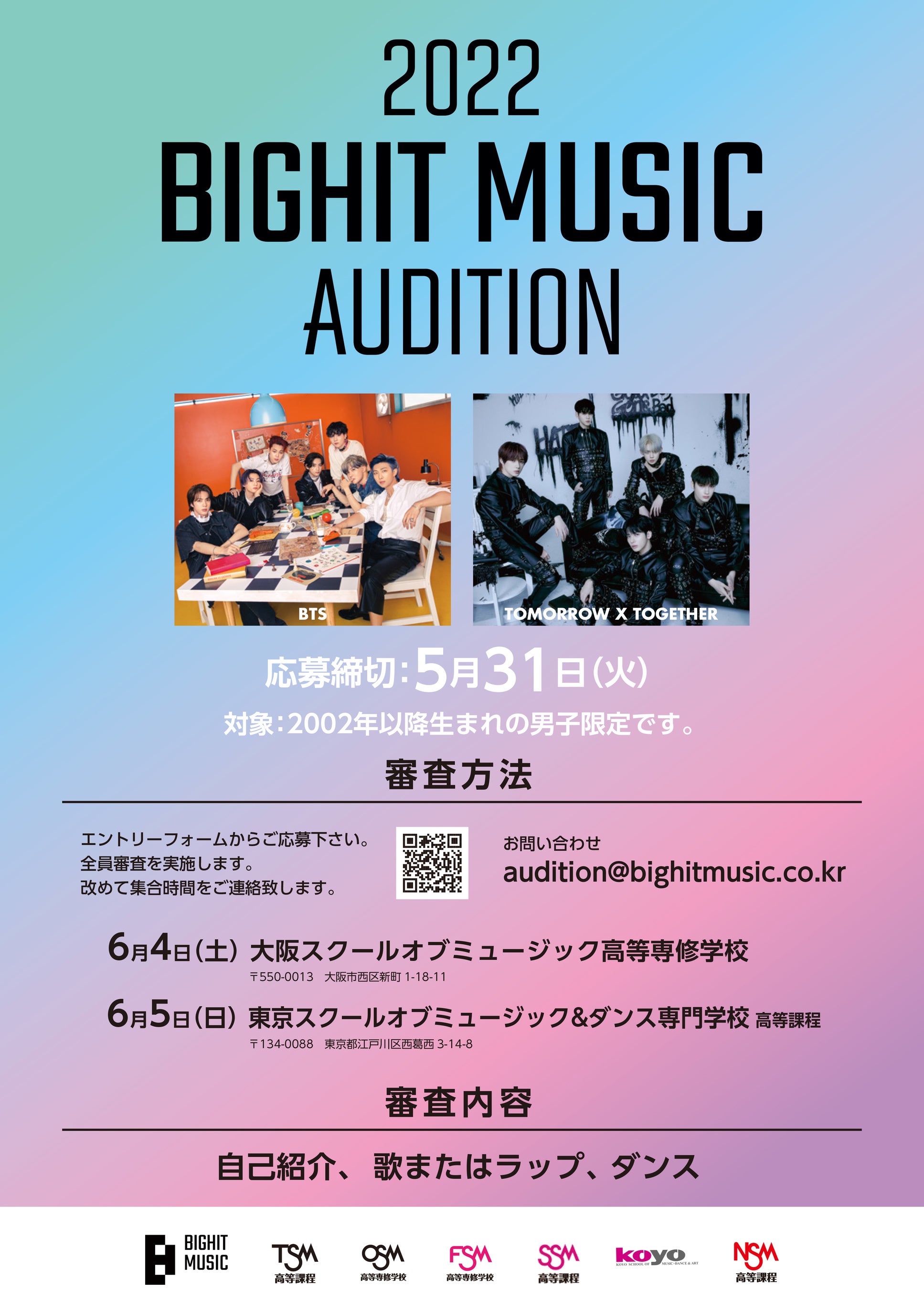BTS、TOMORROW X TOGETHERが所属する韓国の芸能事務所「BIGHIT MUSIC」と共にオーディションを開催いたします。