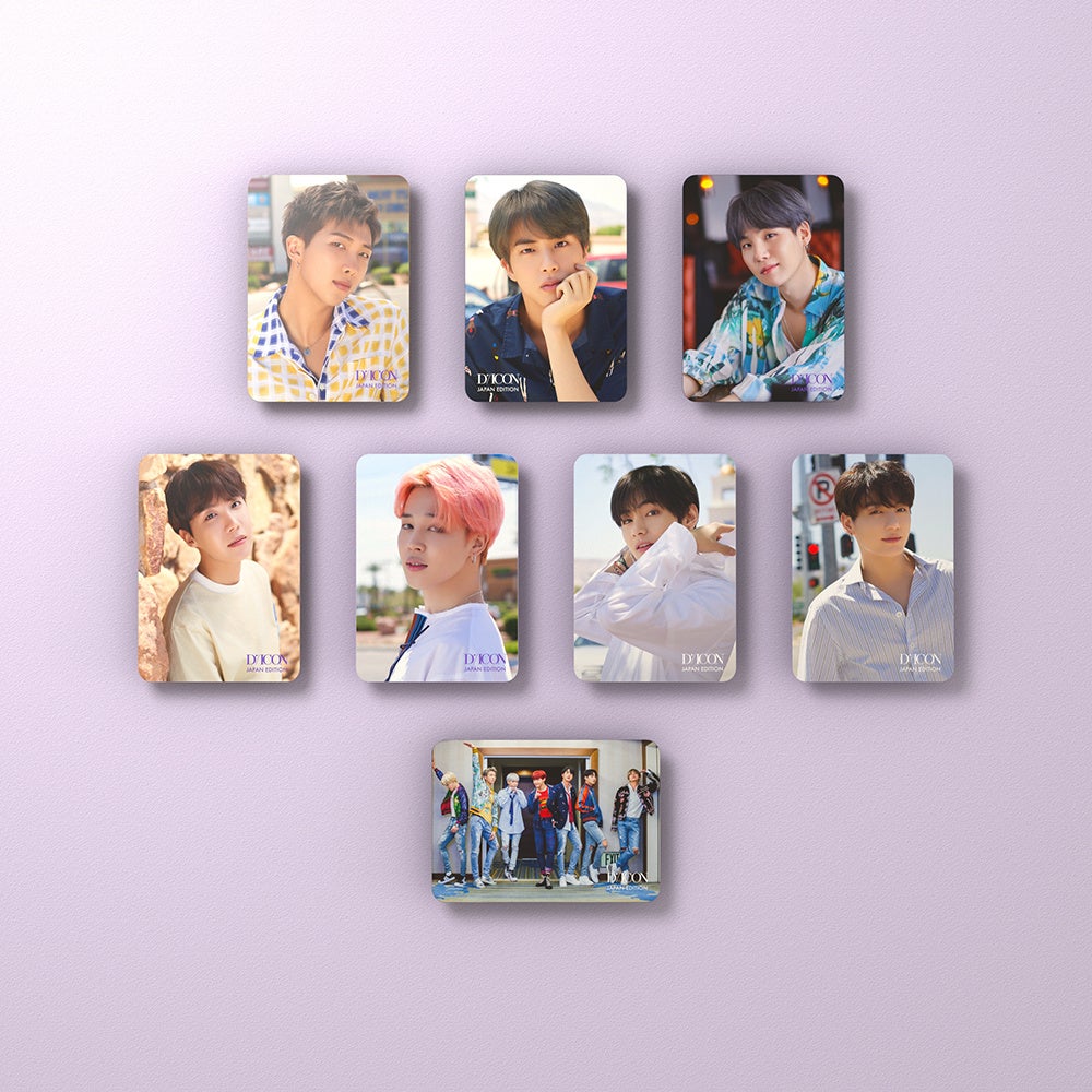 ④破損しにくいプラスチック素材で製作されたハイクオリティな両面フォトカード8枚(メンバー別&全員)