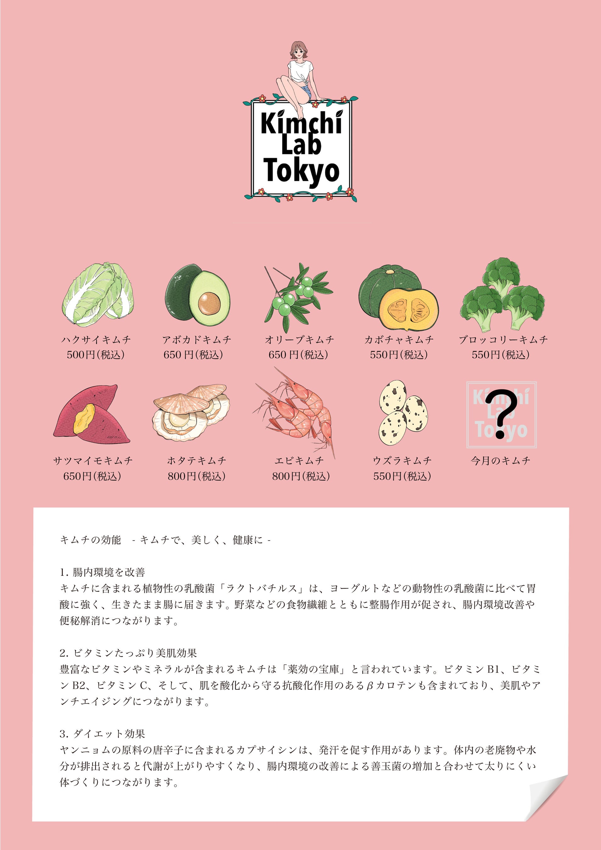 Kimchi Lab Tokyo(キムチラボトーキョー)は、1992年にキムチ専門店として創業し、現在は広島・東京を中心に約15店舗の焼肉専門店、韓国料理店を展開する株式会社グラットン(本社 : 広島県福山市、代表取締役 : 徳永孝進)による、約30年に渡るキムチ製造の豊富な経験とノウハウを注ぎ込んだ、素材と製法にこだわった様々な種類のキムチを販売する日本初のクラフトキムチ専門店。2022年6月4日(土)、渋谷区代官山町の八幡通り沿いに一号店をオープンする。